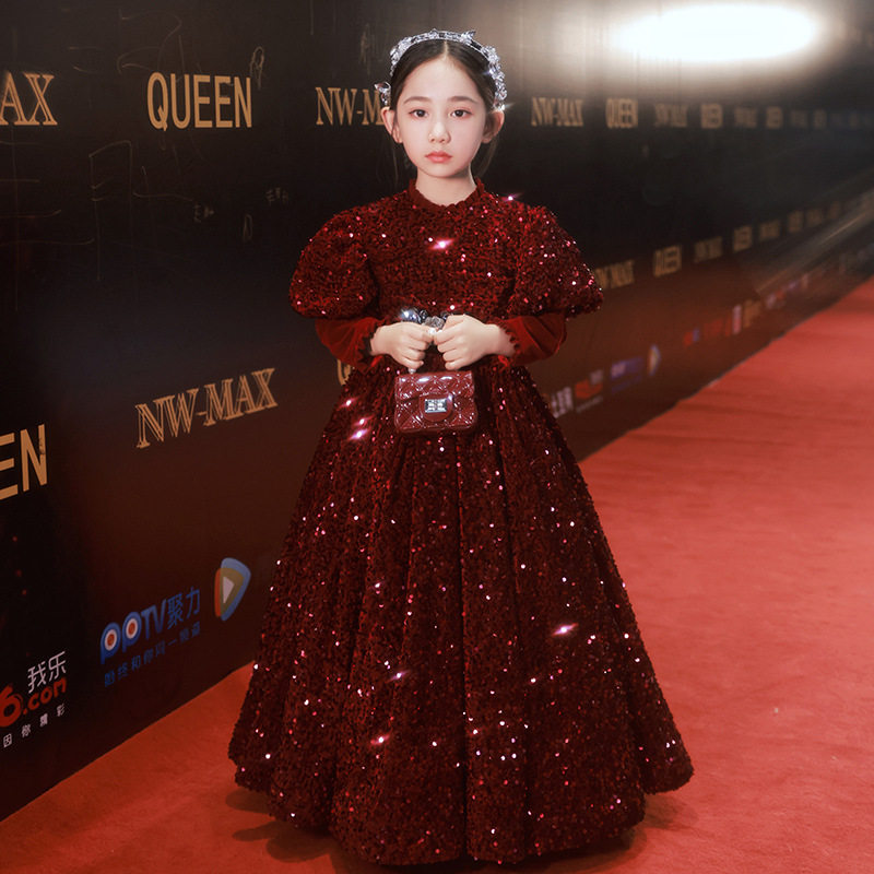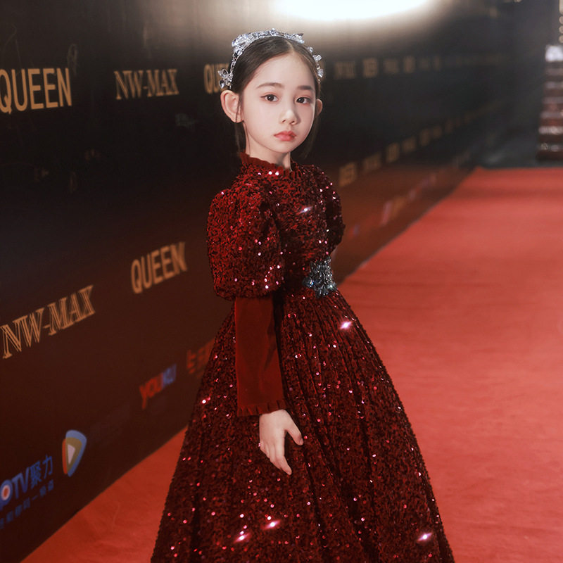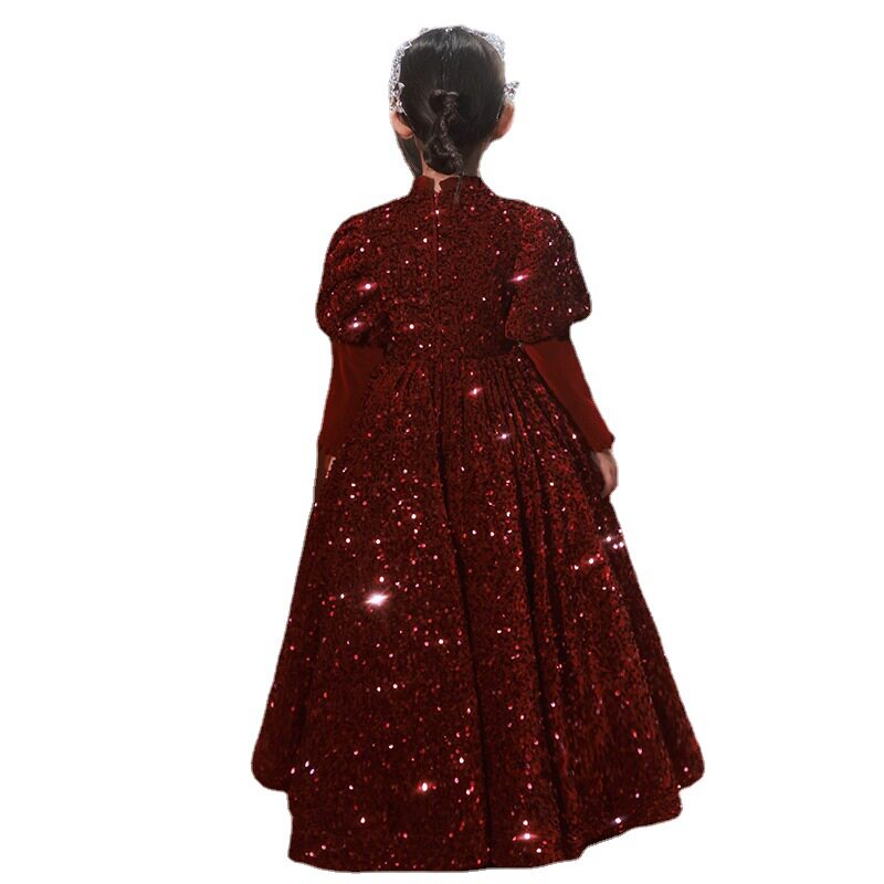 📚 26女童走秀礼服冬季简约亮片小女孩主持人生日花童钢琴演奏连衣裙