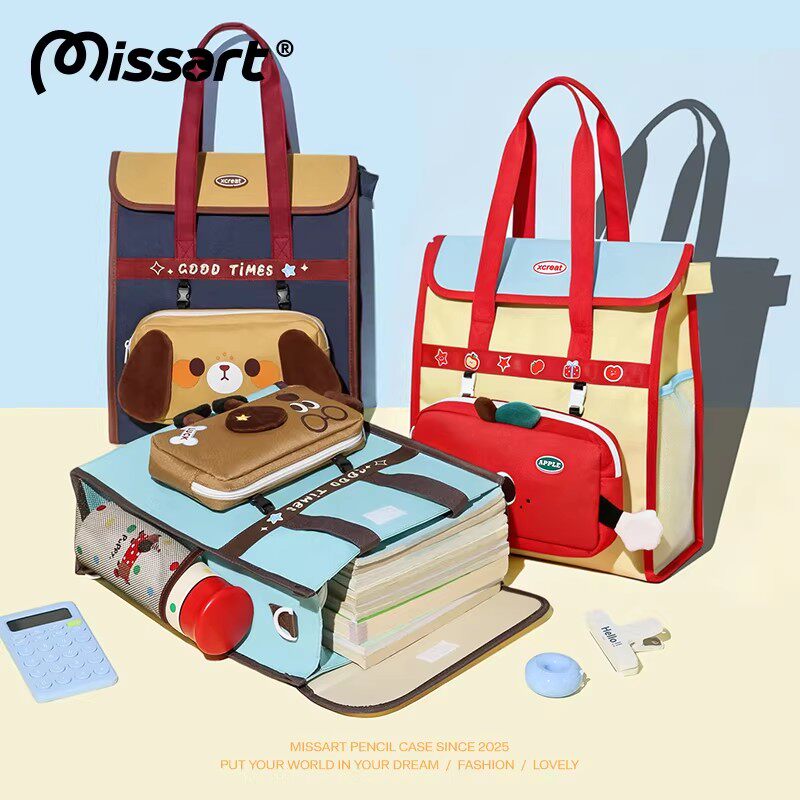 📚 Missart 多功能苹果手提补习袋大容量小学生儿童辅导班课外学习补课包学生男书本收纳袋女孩美术包作业书包