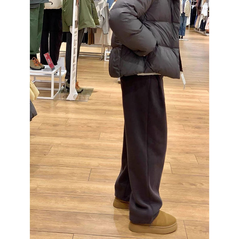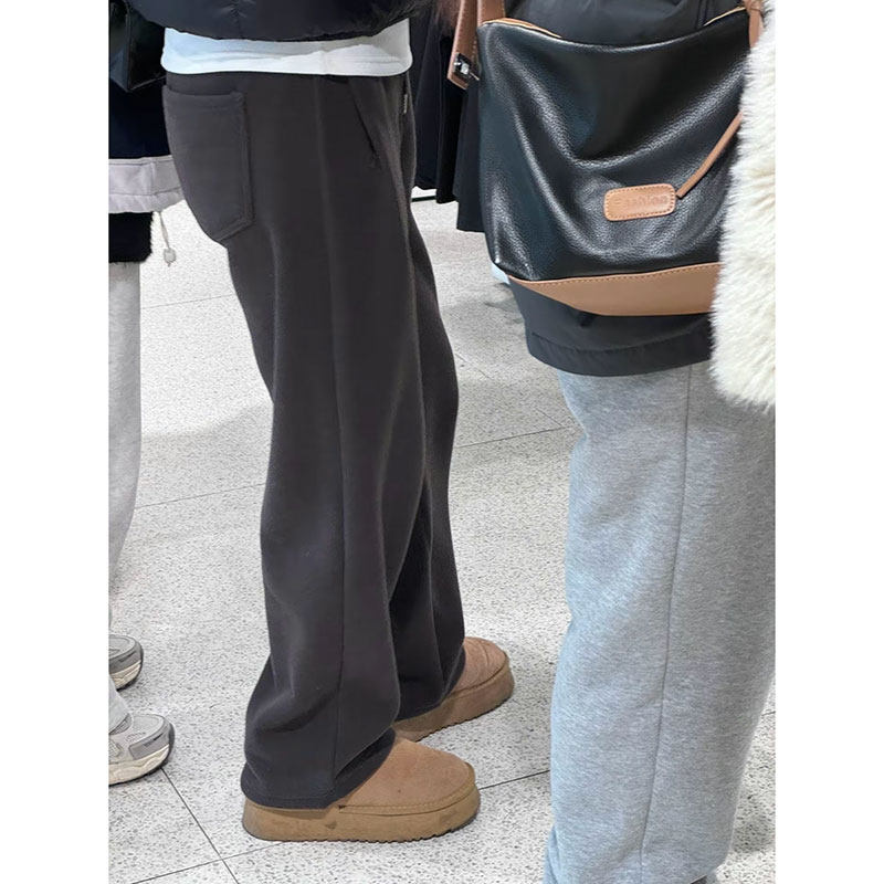 📚 深灰色卫裤男秋冬新款无性别情侣裤子宽松直筒阔腿运动弯刀裤潮牌