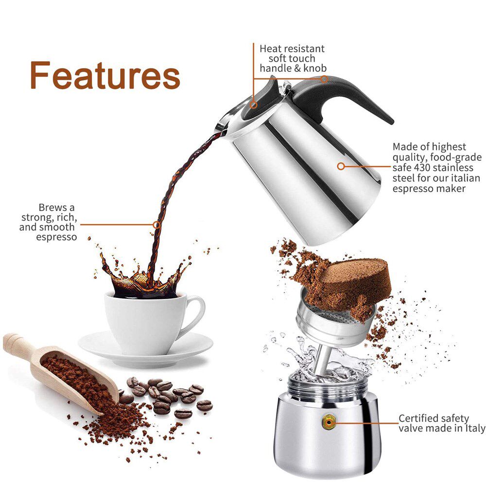 📚 Italian Coffee Machine Moka Pot Stainless Steel Geyser Coffe