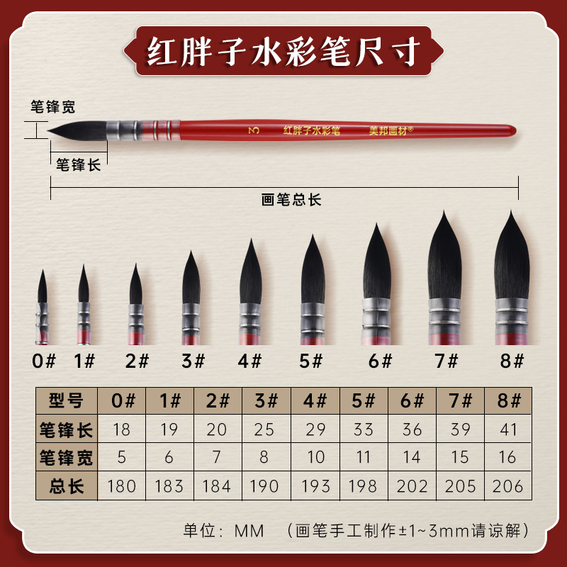📚 红胖子水彩笔专业级画笔套装专业绘画水彩毛笔美术生专用圆头勾线笔画笔尼龙刷子水彩画材黑天鹅水彩笔单支装