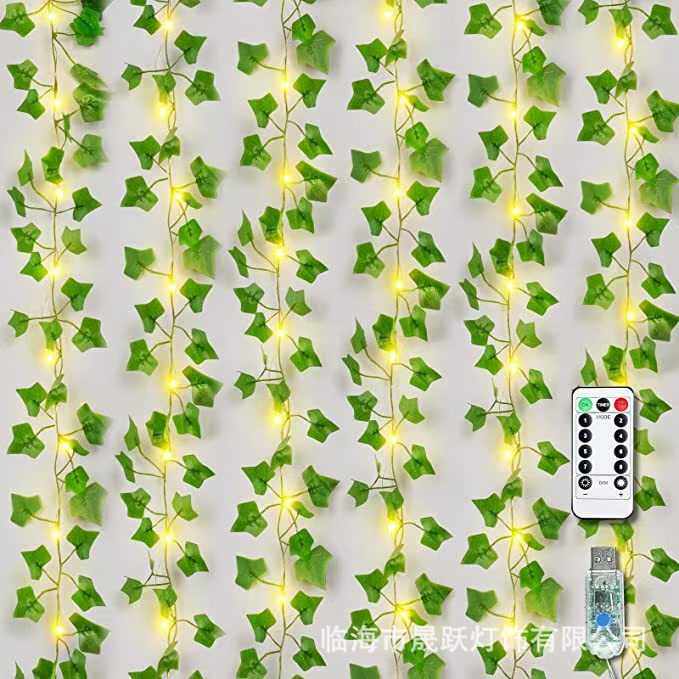 📚 藤条绿叶3*3窗帘彩灯串铜丝灯(17)curtain rattan lights