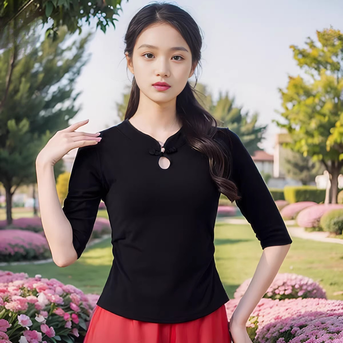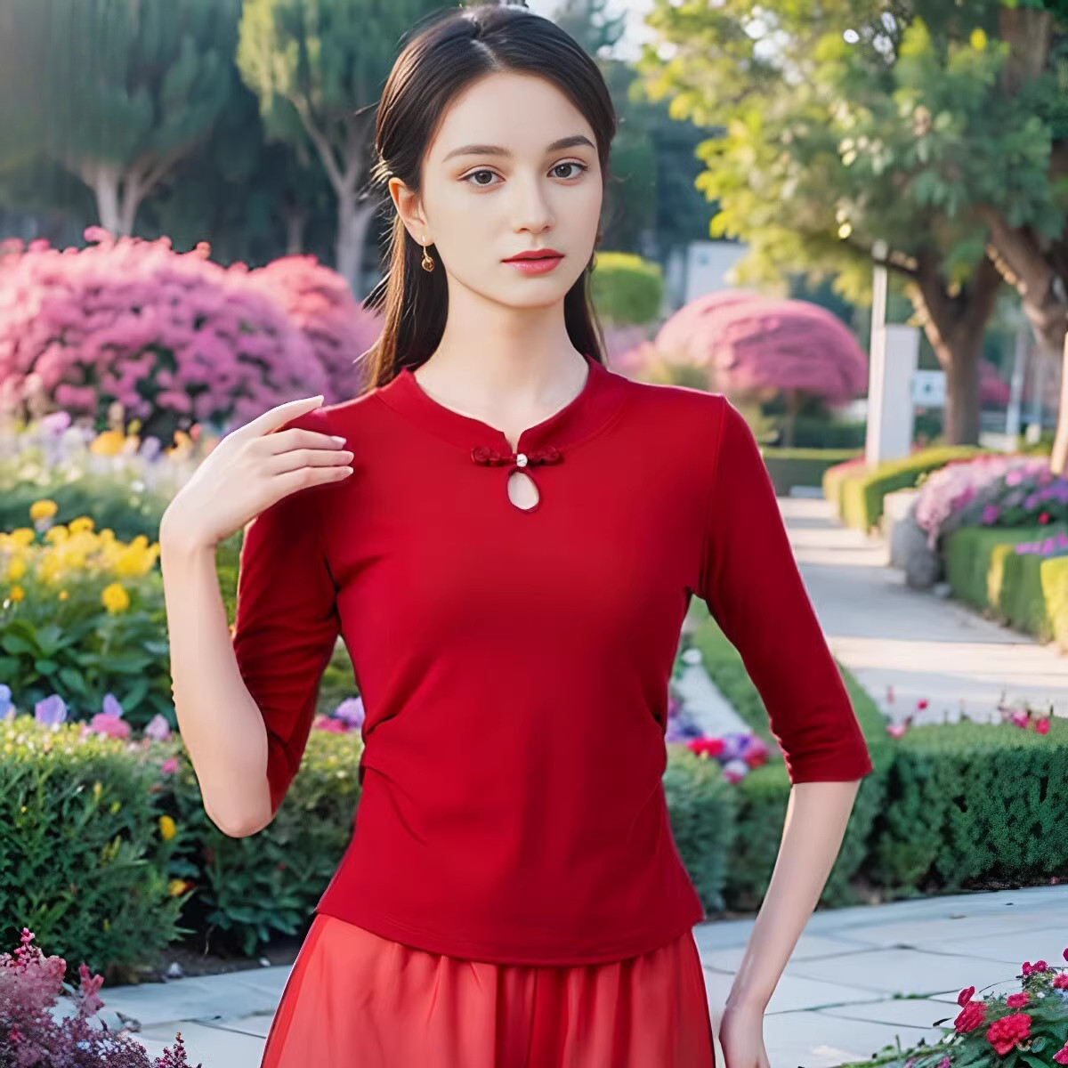 📚 广场舞服装新款旗袍领古典演出服表演上衣中国风演出大码女服装女