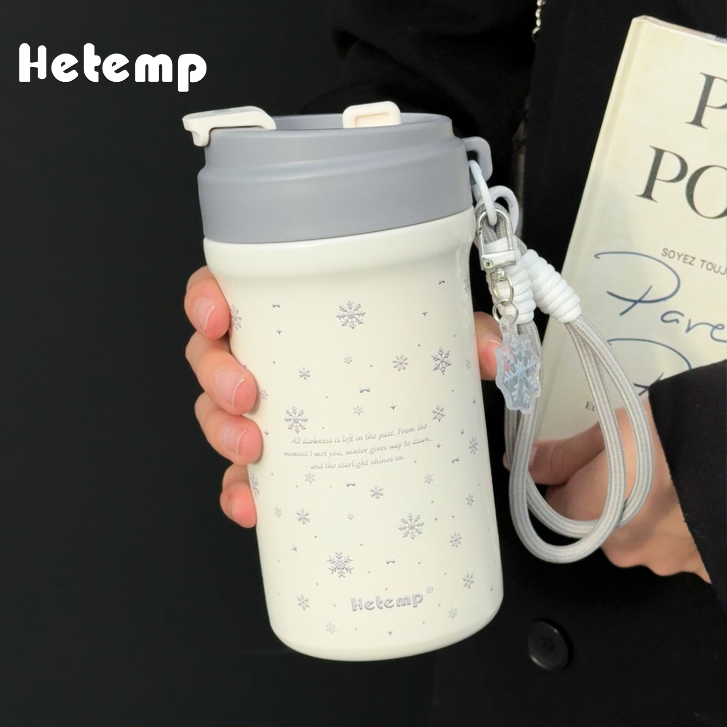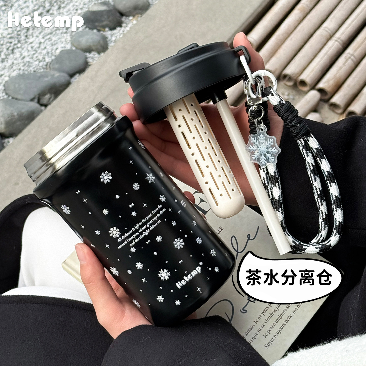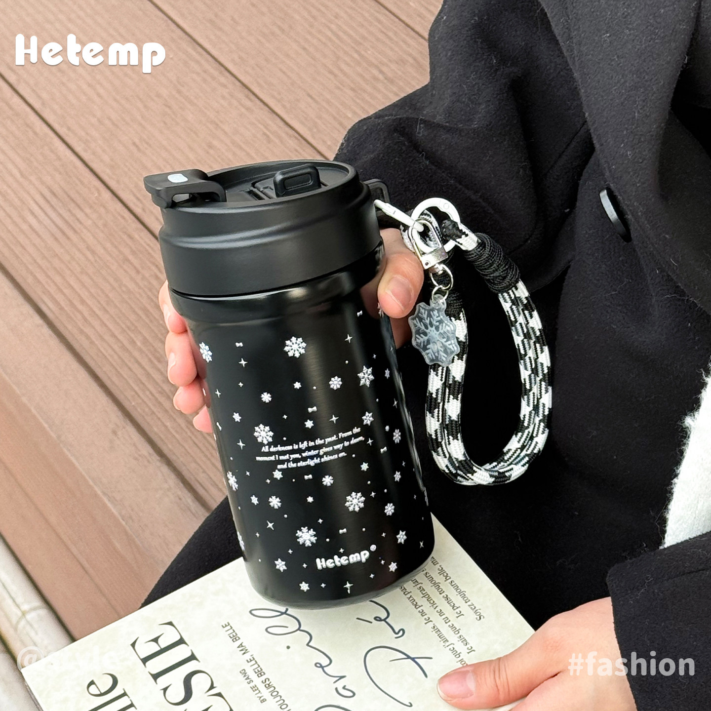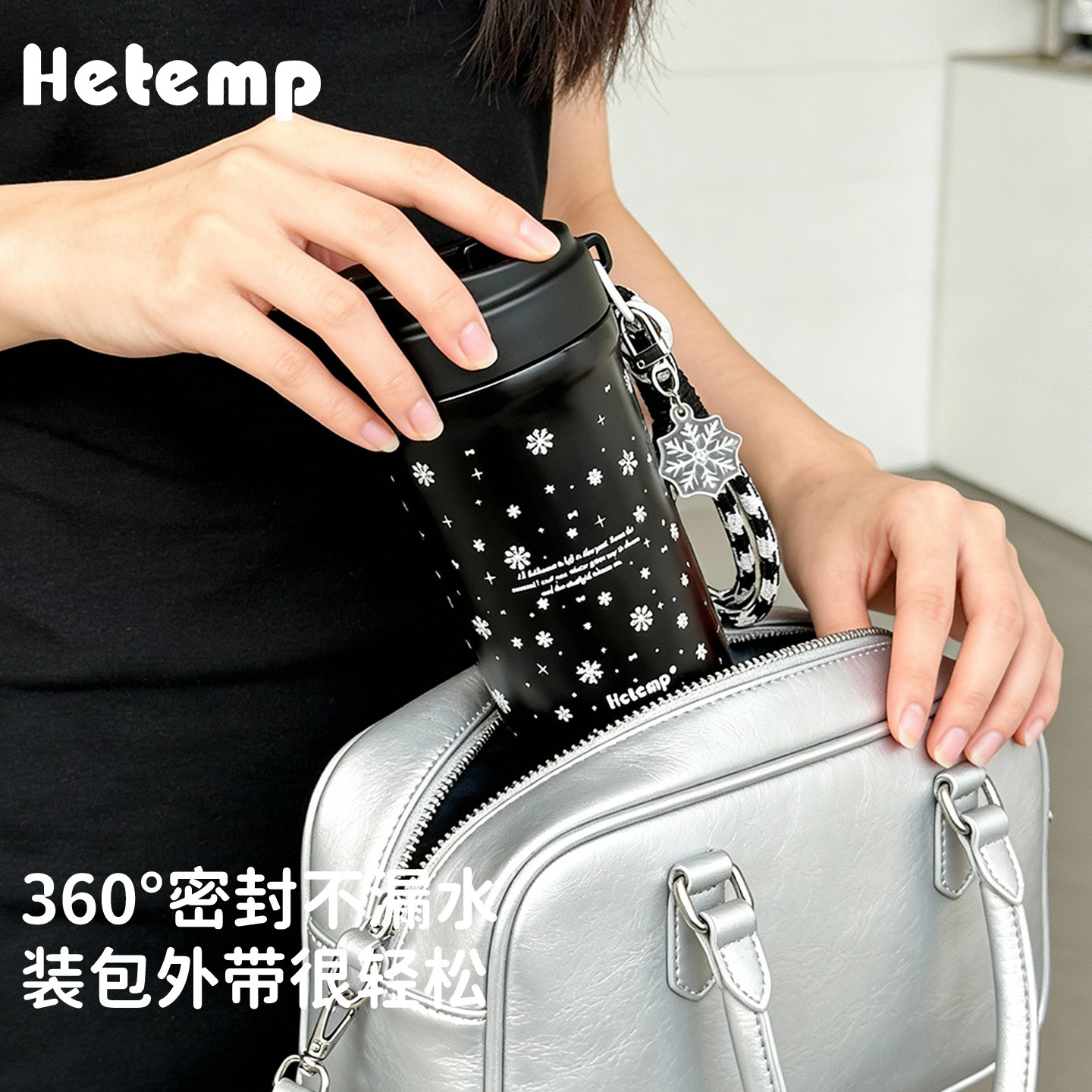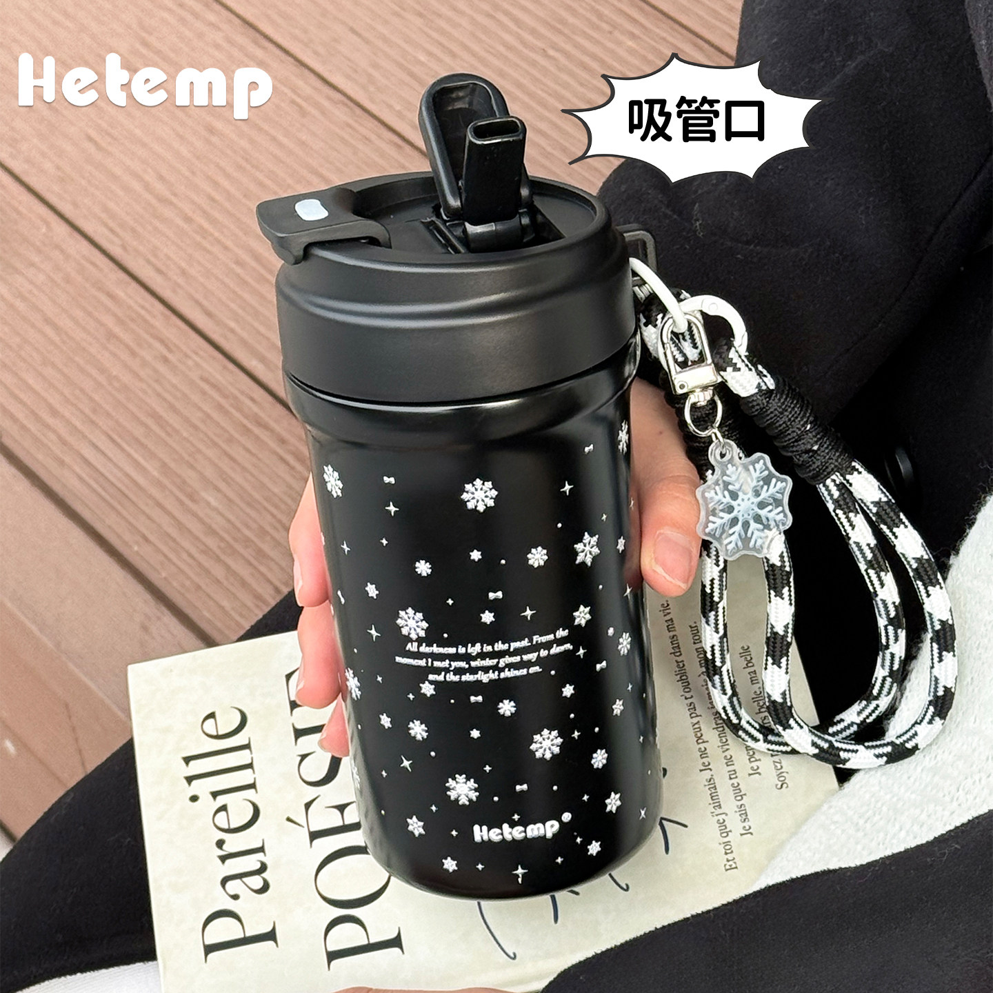 📚 恒度新款雪花保温杯不锈钢水杯女生高颜值便携杯子学生吸管咖啡杯