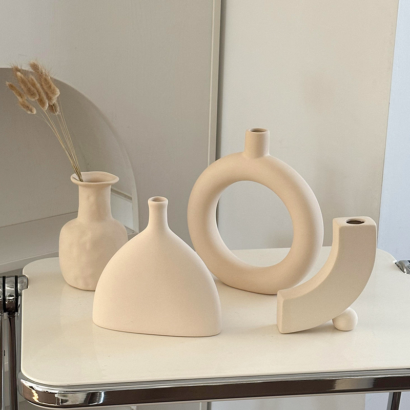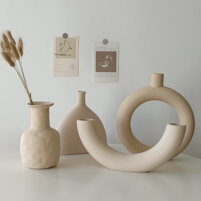 📚 ins风复古素胚陶瓷花瓶北欧客厅玄关家居饰品装饰餐边柜摆件干花