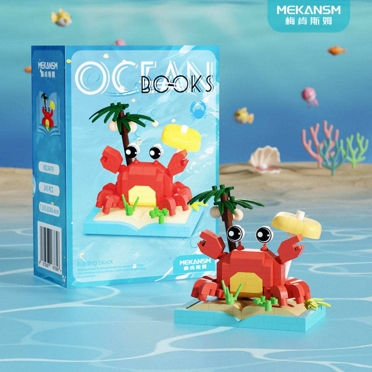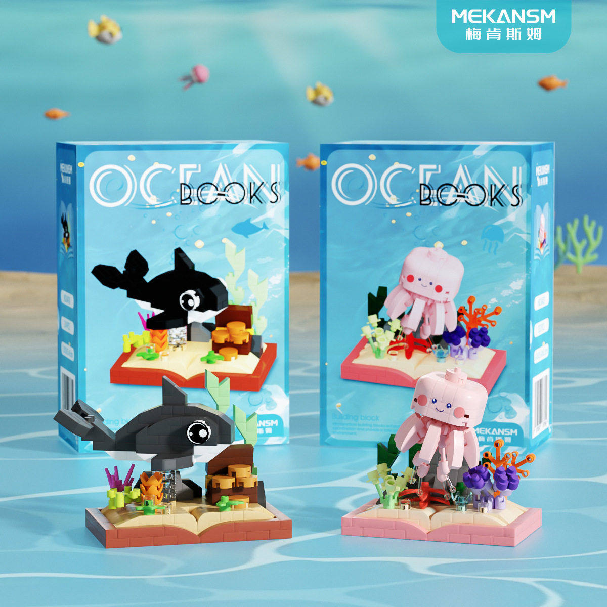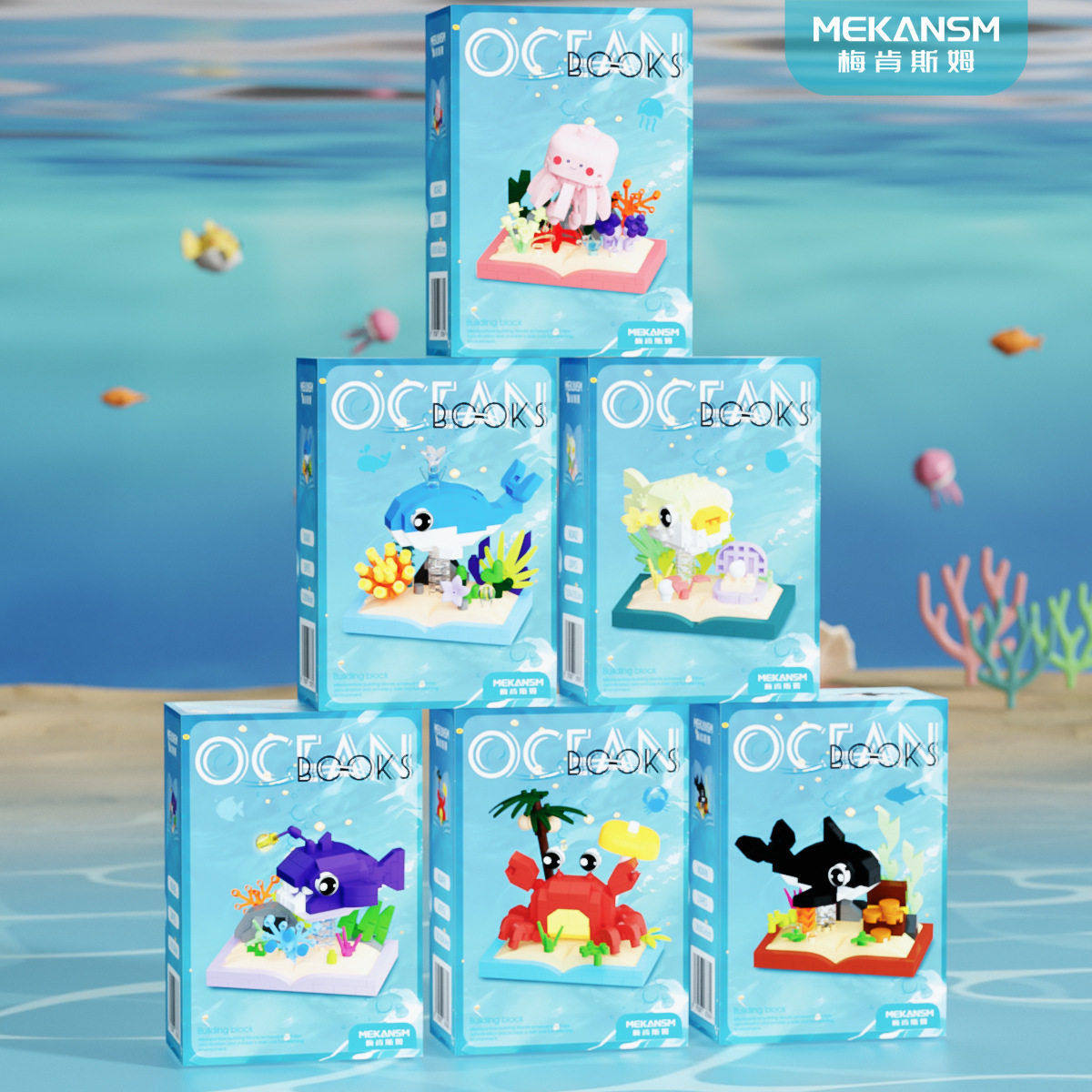 📚 梅肯斯姆海洋书笺虎鲸八爪鱼螃蟹卡通动物益智拼装积木玩具礼物