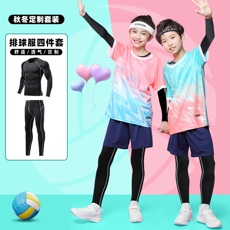 📚 儿童排球服四件套粉色足球训练服男女童定制小学生比赛队服运动服