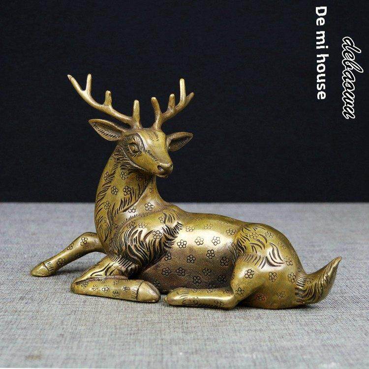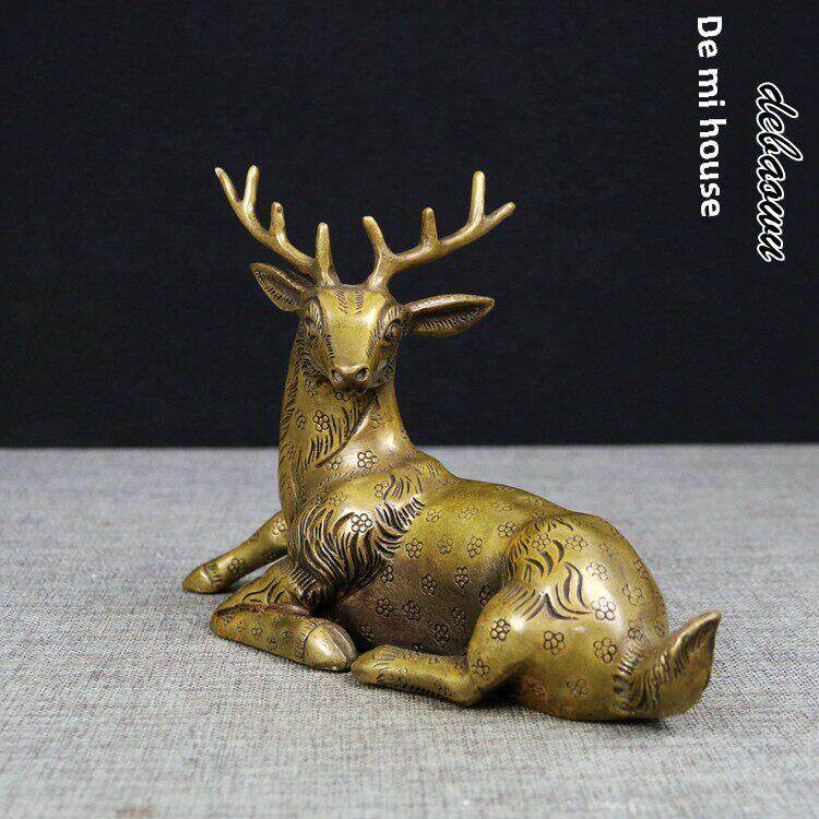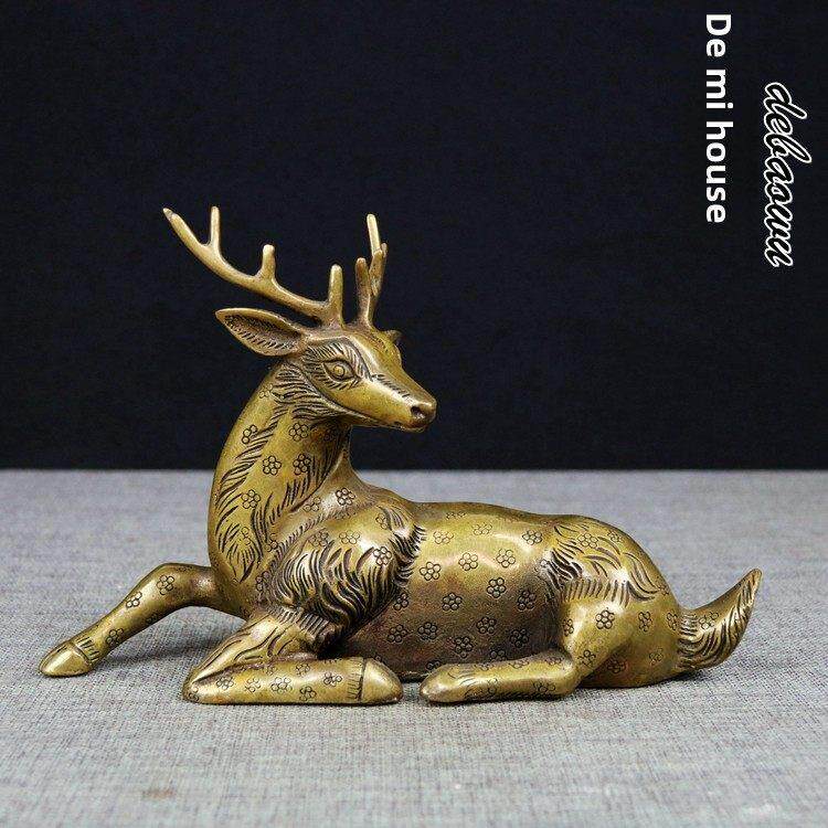 📚 铜梅花鹿纯铜工艺品摆件雕塑卧鹿回头鹿风水摆件家居铜鹿装饰