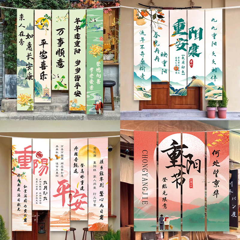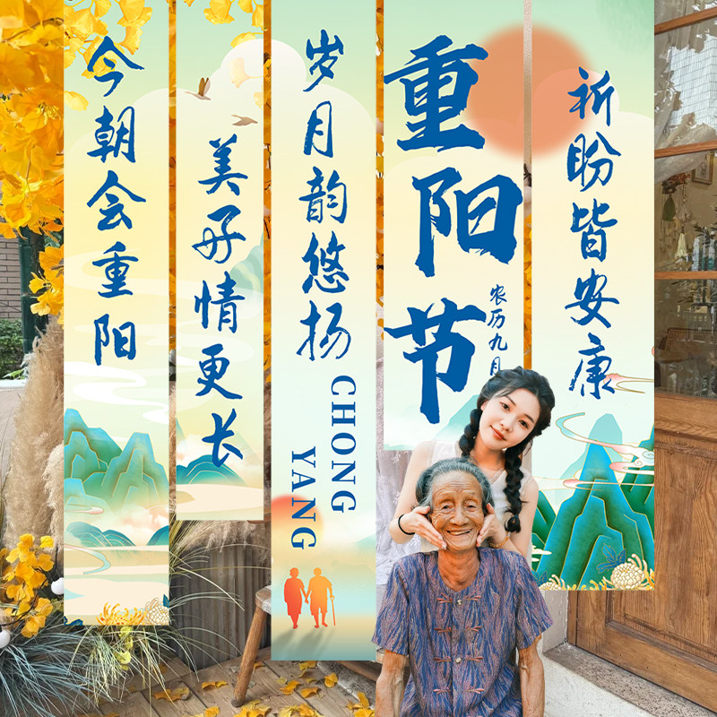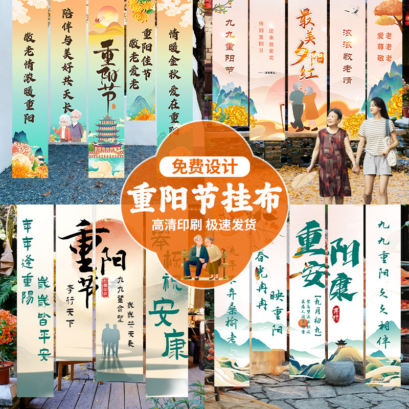 📚 九九重阳节条幅定制养老中心背景墙氛围竖拉条装饰老人公寓物业横幅旗帜布置敬老院学校社区公益宣传活动挂布