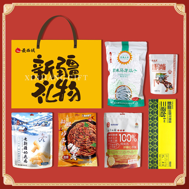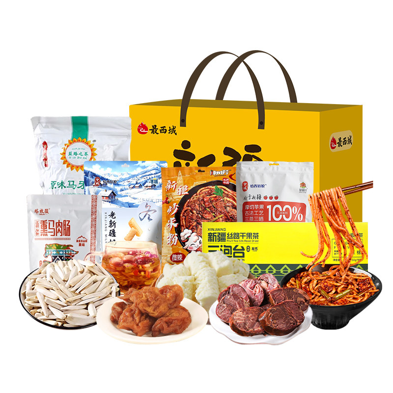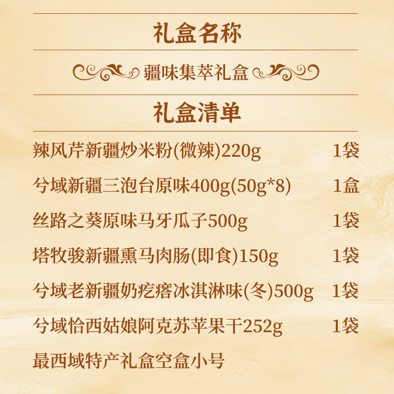 📚 【新疆特产礼盒】最西域疆味集萃熏马肉肠奶疙瘩炒米粉年货送礼物