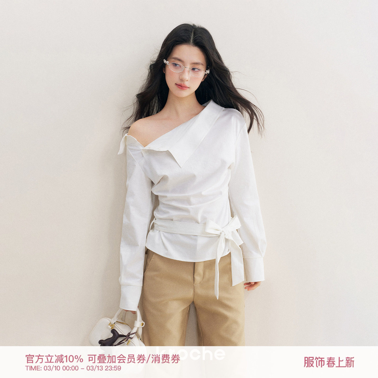 98¥ CA381 rskqUvugQRm¥ https://m.tb.cn/h.iWf9WRh Kroche Geek chic 舒适棉感不规则抽褶系带修身斜肩长袖衬衫 --------------------- 【原售价】339元 【现售价】339元。