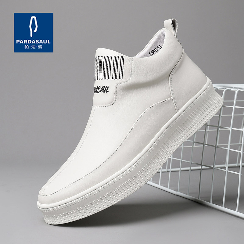 📚 帕达索男鞋新款休闲高帮鞋百搭真皮英伦百搭透气高邦小白鞋81018