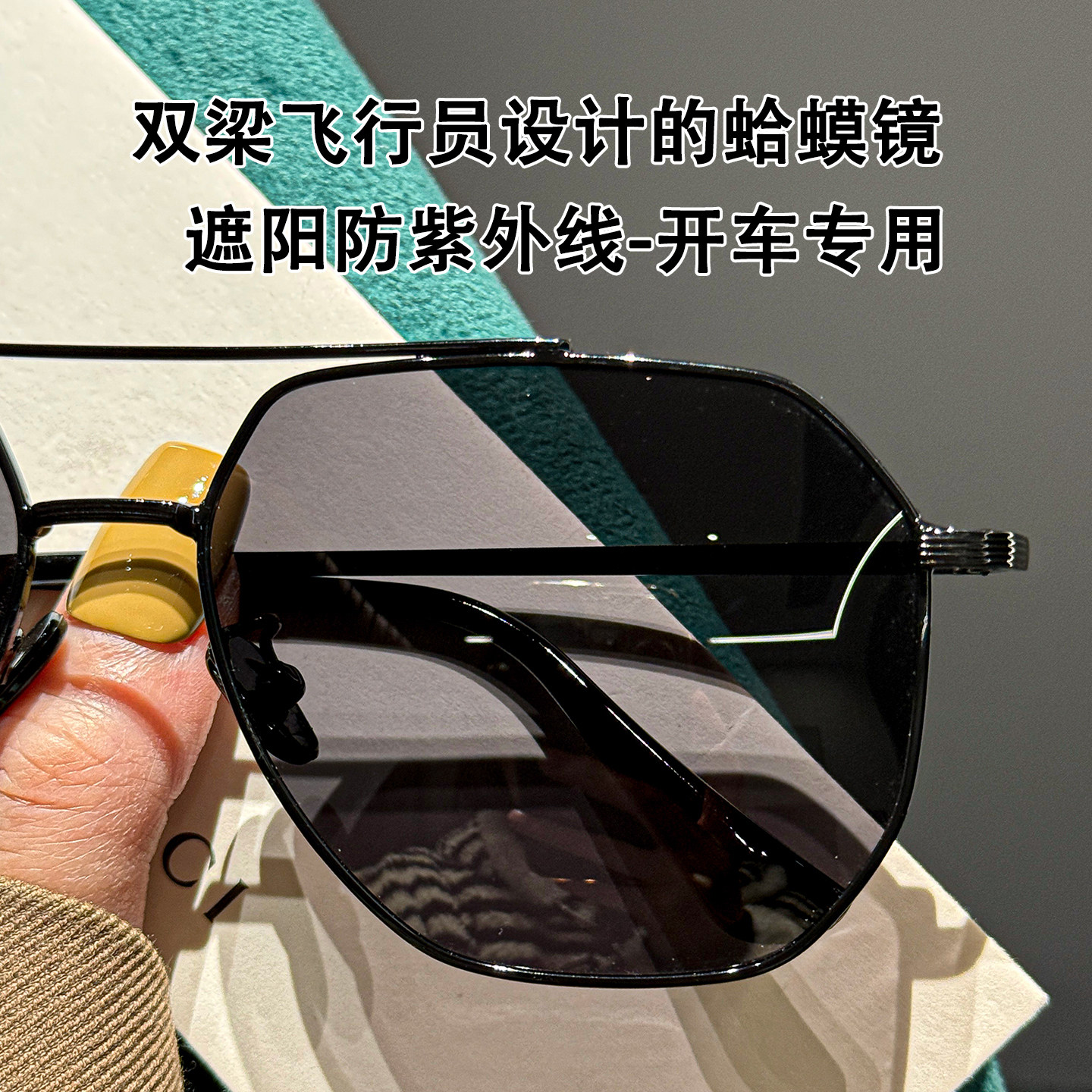 📚 飞行员式双梁男士偏光墨镜开车专用防紫外线大框显瘦带度数太阳镜