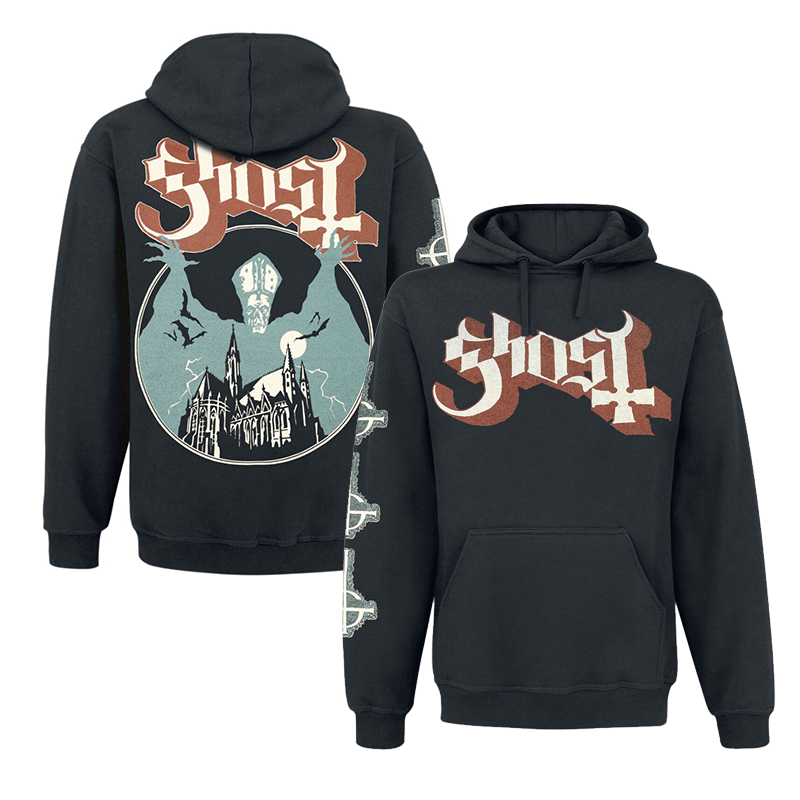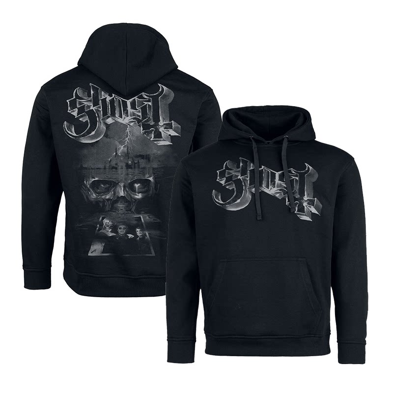 📚 Ghost 瑞典重金属/幽灵摇滚乐队骷髅印花宽松纯棉重磅连帽卫衣男