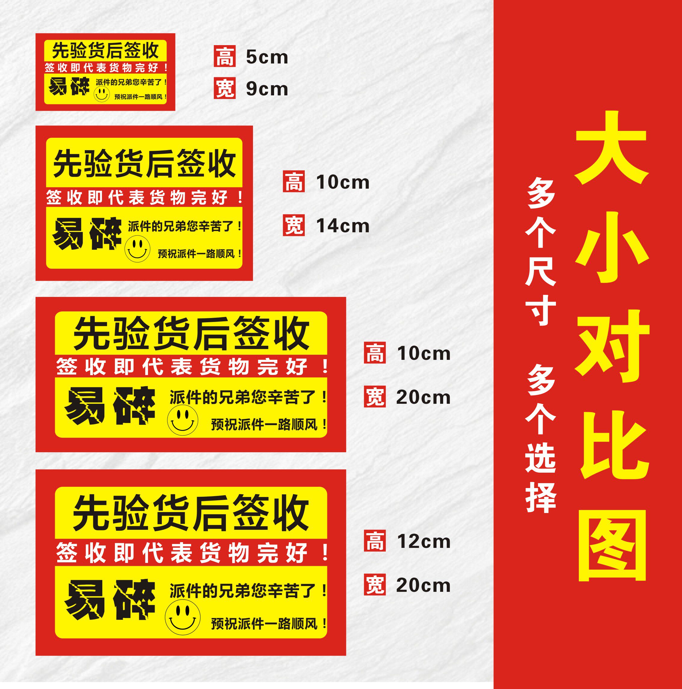 📚 先验货后签收易碎品勿压勿摔小心轻放开箱验视不干胶定制标贴