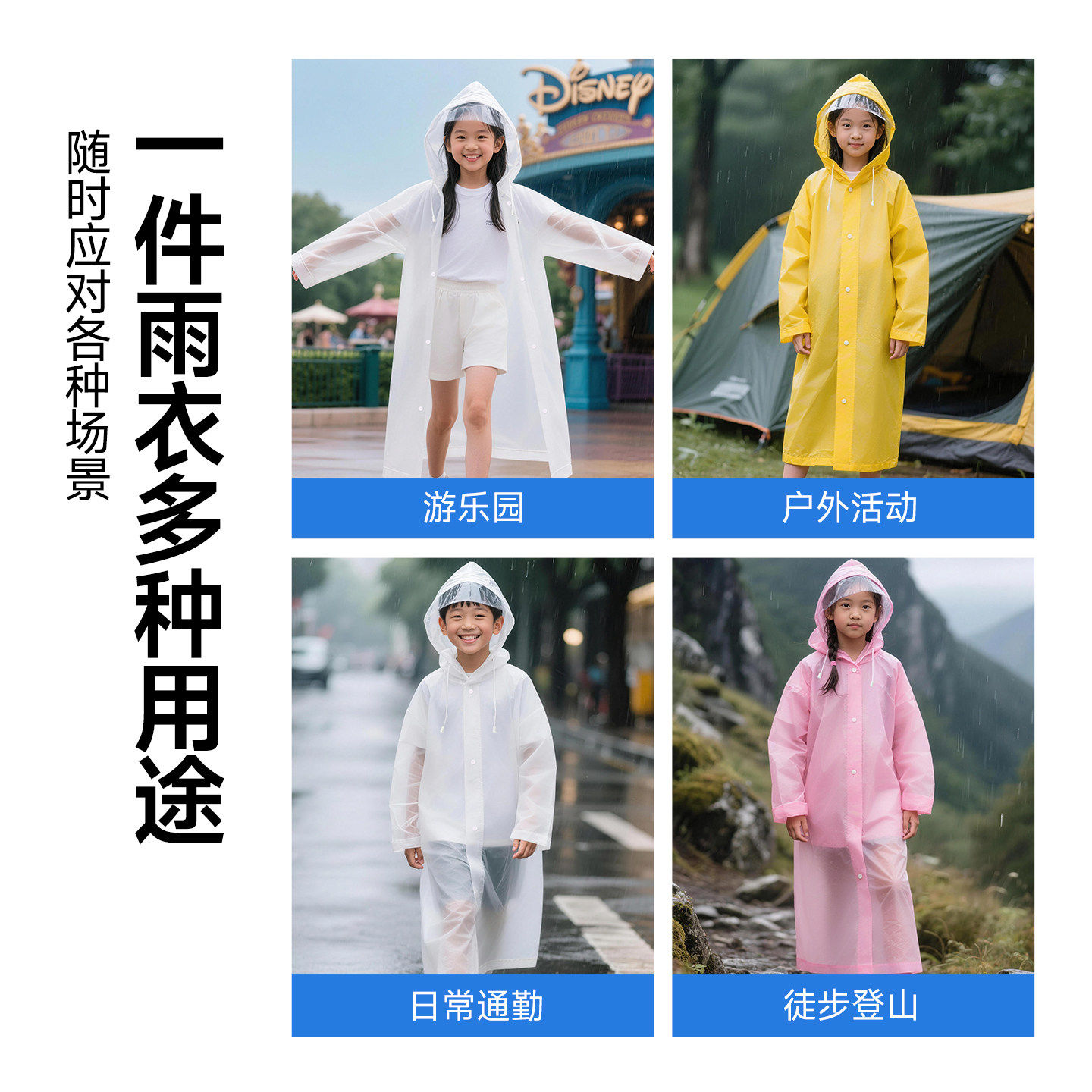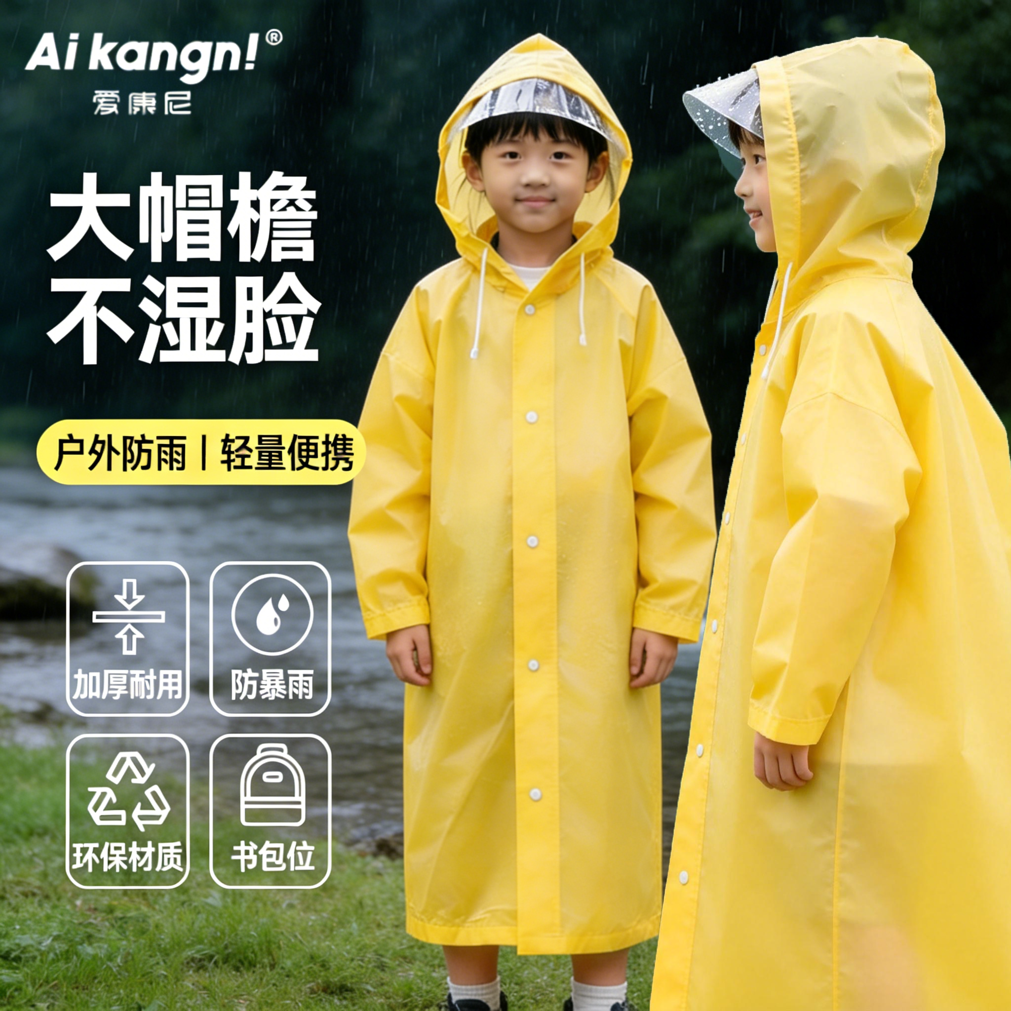 📚 儿童一次性雨衣大帽檐加长加厚户外防暴雨学生专用可背书包便携式