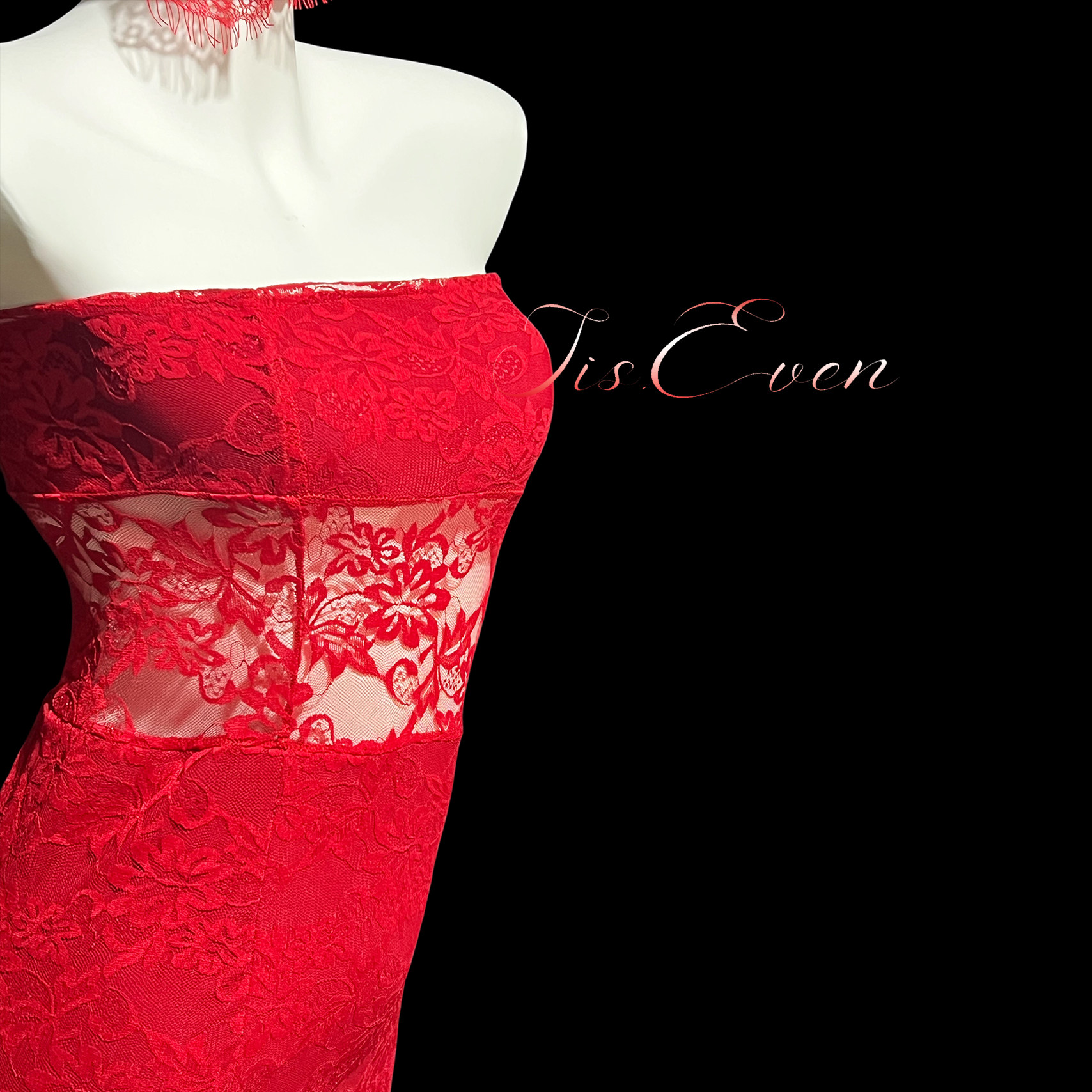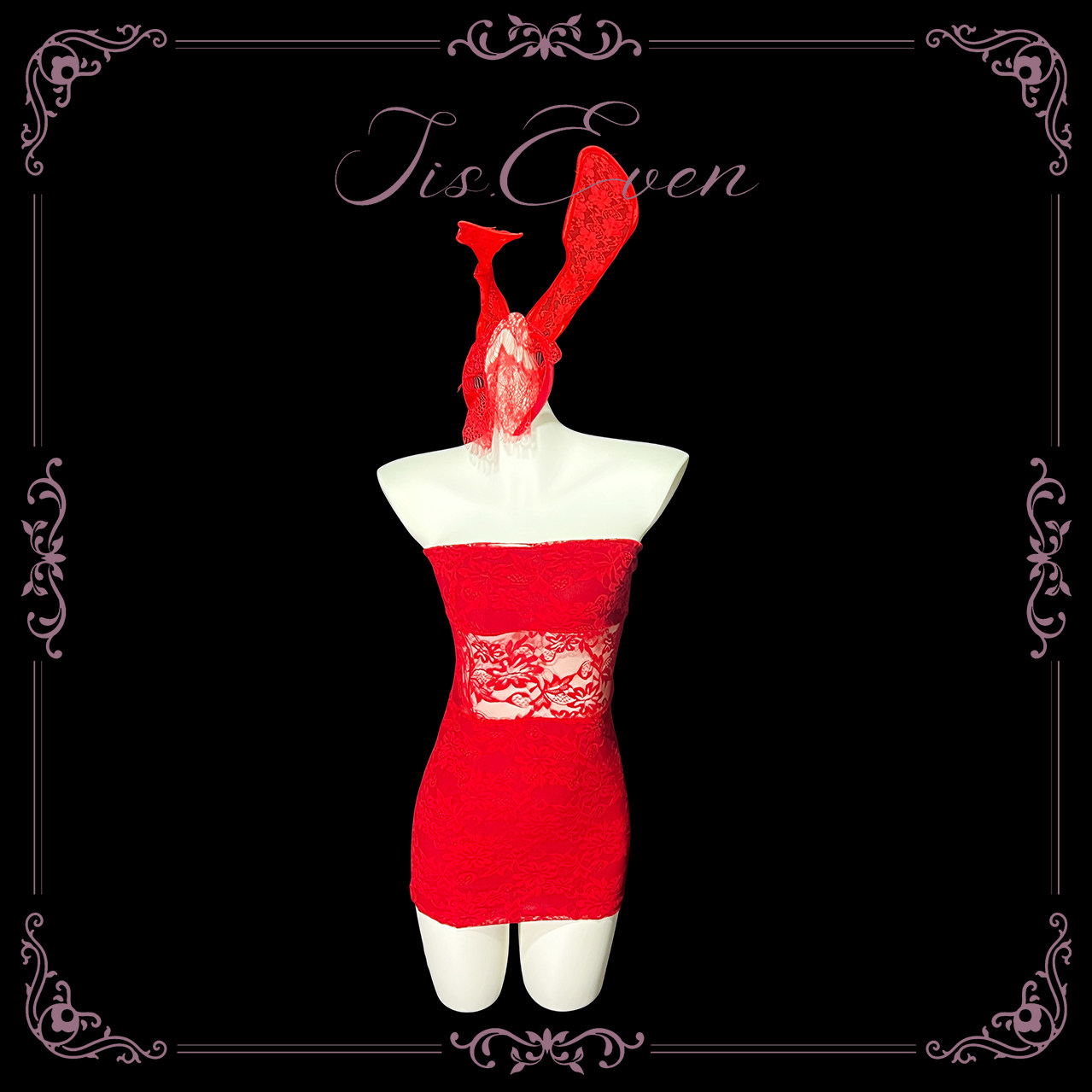 📚 even学姐:圣诞玫瑰*一字肩蕾丝性感抹胸兔女郎收腰包臀短裙
