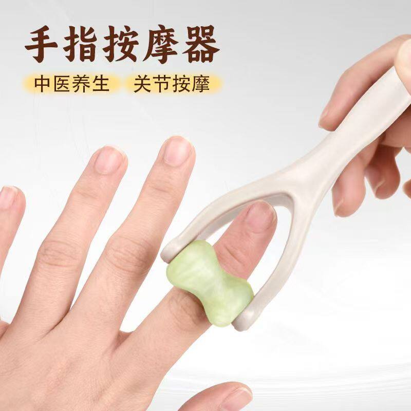 📚 天然砭石玉石手指按摩器多功能夹手部关节按摩棒滚轮点穴疏通spa