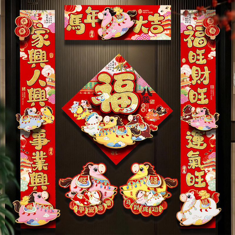 📚 2026新款马年生肖创意对联新年装饰春节福字入户门贴过年立体春联