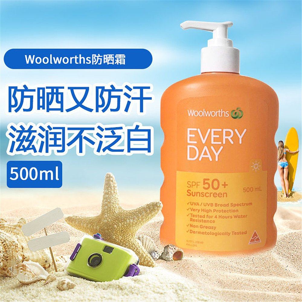 📚 澳大利亚直邮Woolworths防晒霜防水防汗长效防护隔离家庭装500ml
