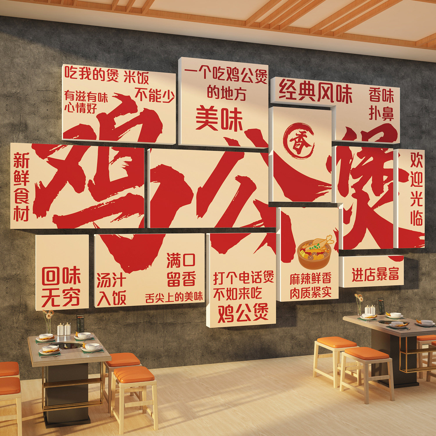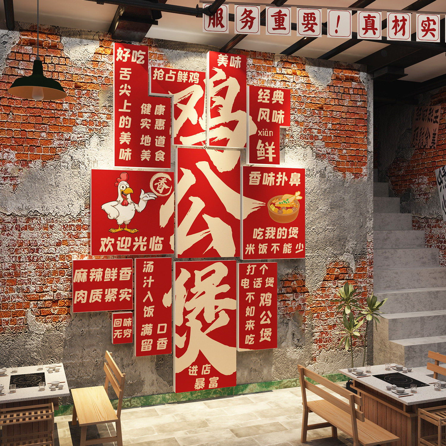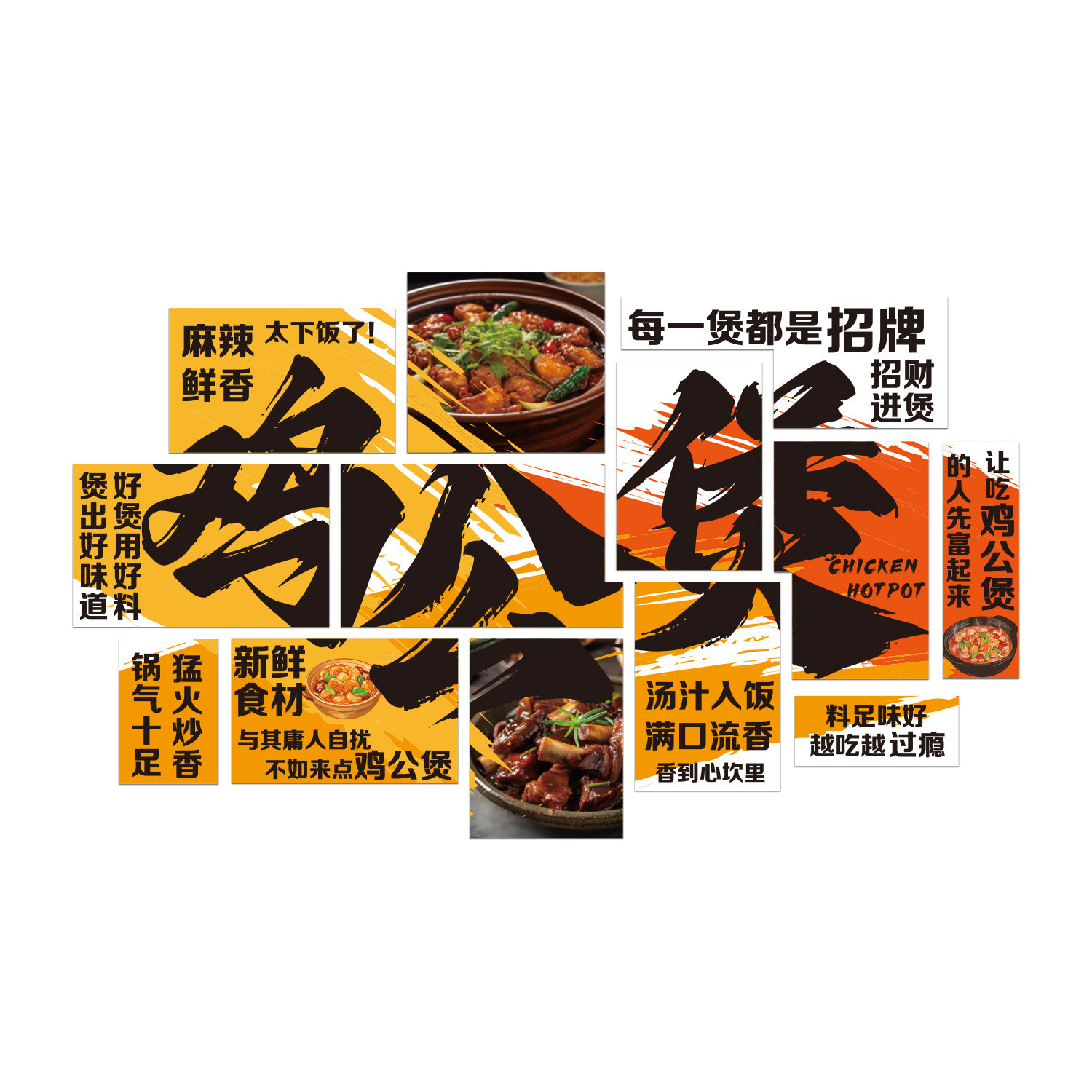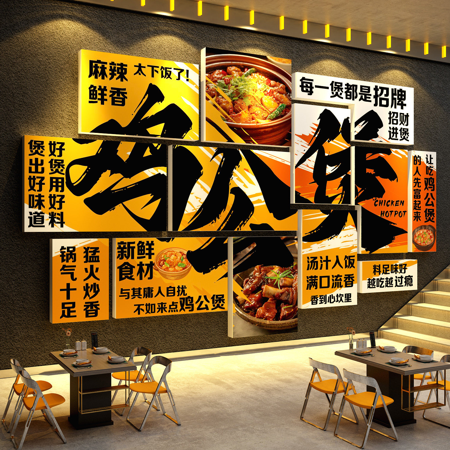 📚 重庆地锅鸡公煲墙面装饰贴海报广告牌黄焖烧炒农家乐店快餐饮壁画