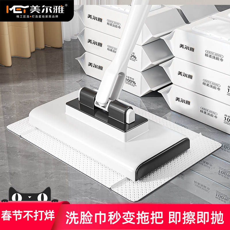 📚 美尔雅洗脸巾拖把办公室自动夹抹布家用一拖净懒人迷你平板小拖布