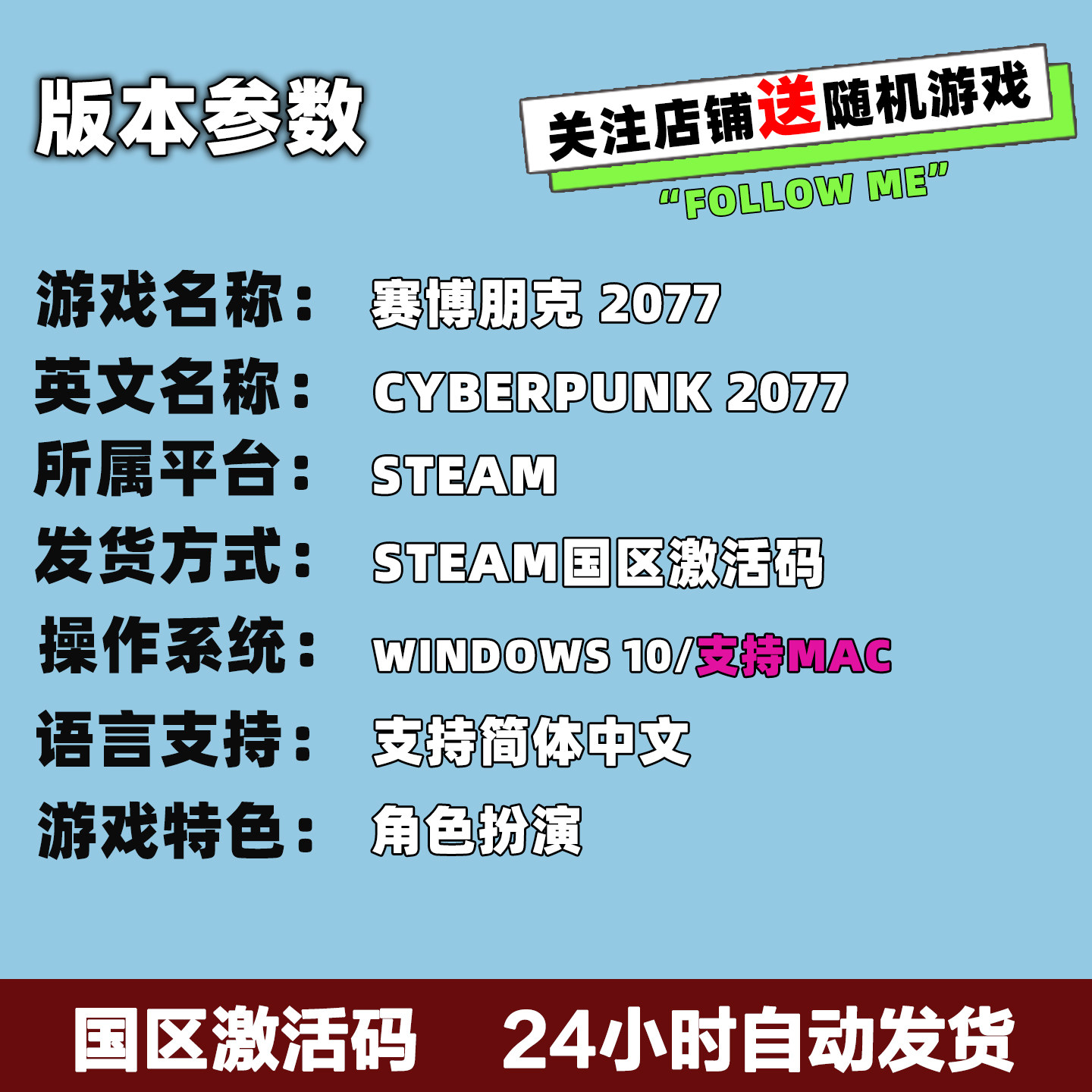 📚 Steam正版国区KEY 赛博朋克2077 Cyberpunk 2077 国区激活码现货