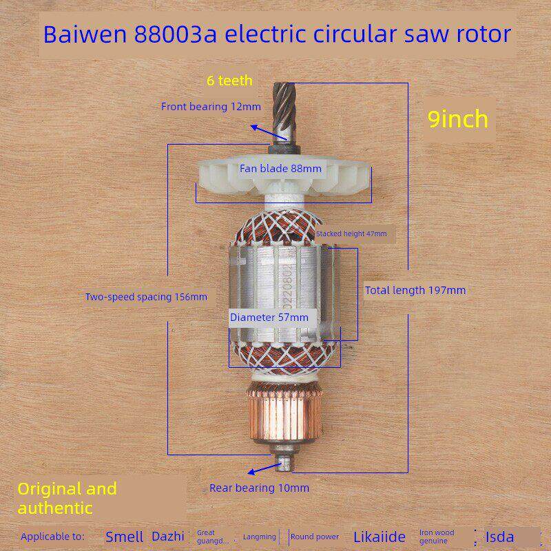 📚 百文88003A电动圆锯转子大希达广东墨航235台锯定子9寸6齿原装配