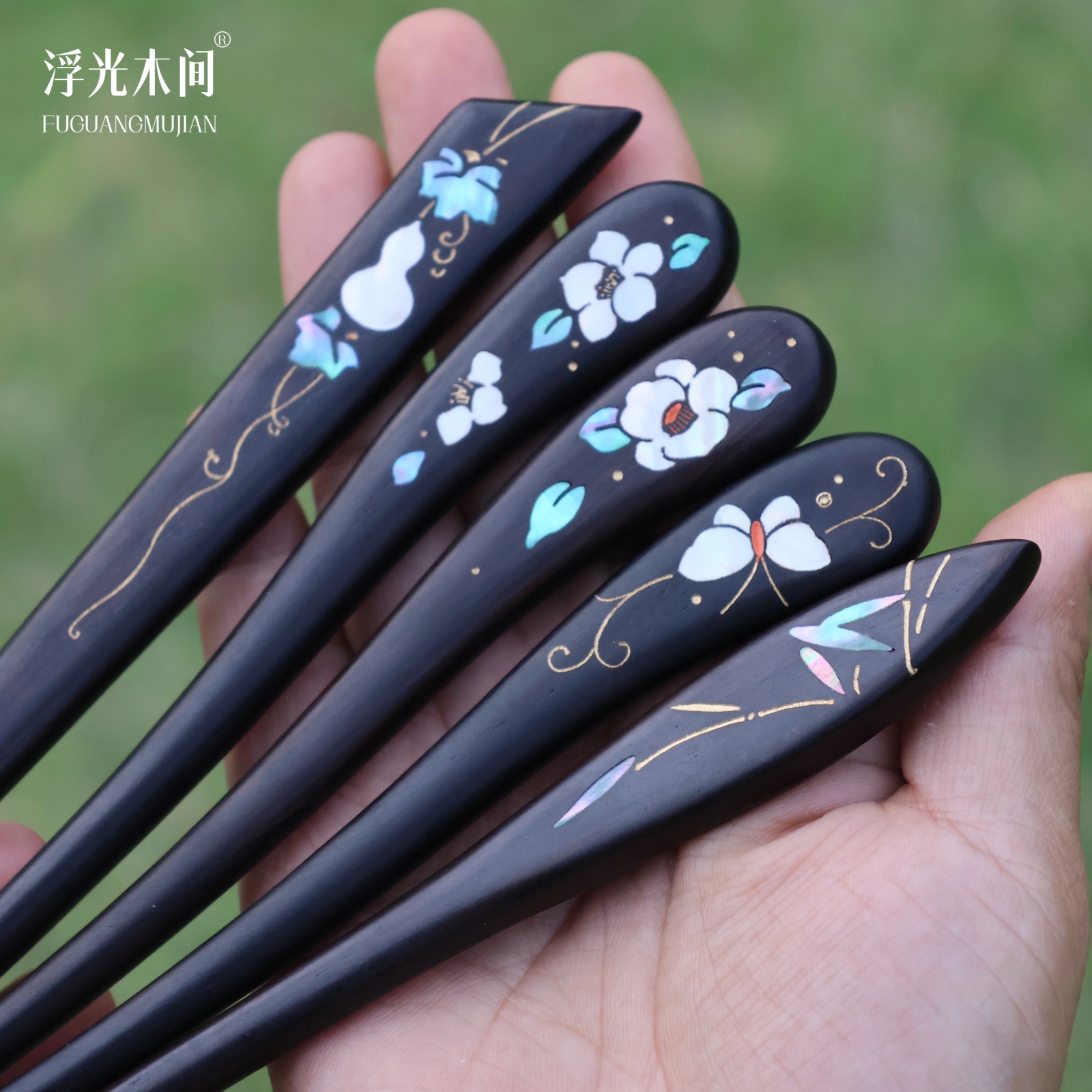 📚 浮光木间 螺钿檀木发簪系列古风檀木高级感简约现代送女朋友发饰