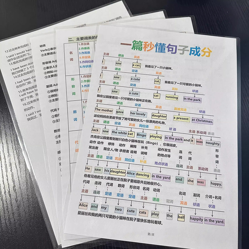 📚 英语全套语法16大时态介词从句子成分体系知识点初中小学学习卡片