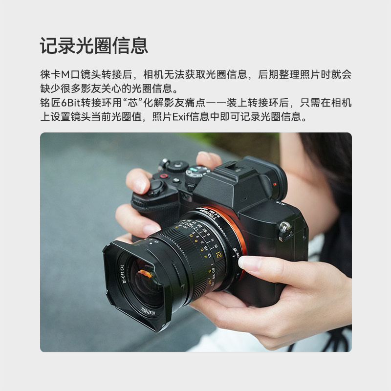 📚 铭匠光学转接环M-E 6Bit二代适用徕卡蔡司福伦达M卡口镜头转索尼E卡口机身A7R2 M3 M4 R5微单相机
