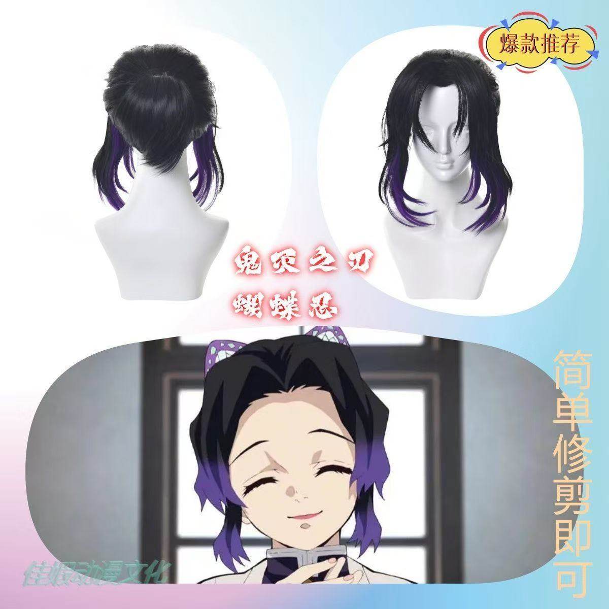 📚 玫瑰网现货 蝴蝶忍鬼灭之刃cos毛坯假发 新手易造型渐变马尾动漫