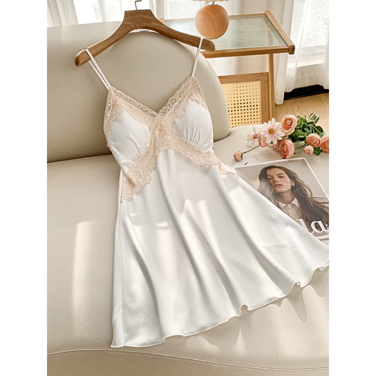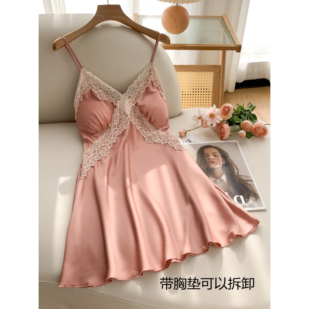 📚 罗丽丝性感蕾丝睡衣女夏季2025年新款吊带睡裙冰丝带胸垫纯欲风情