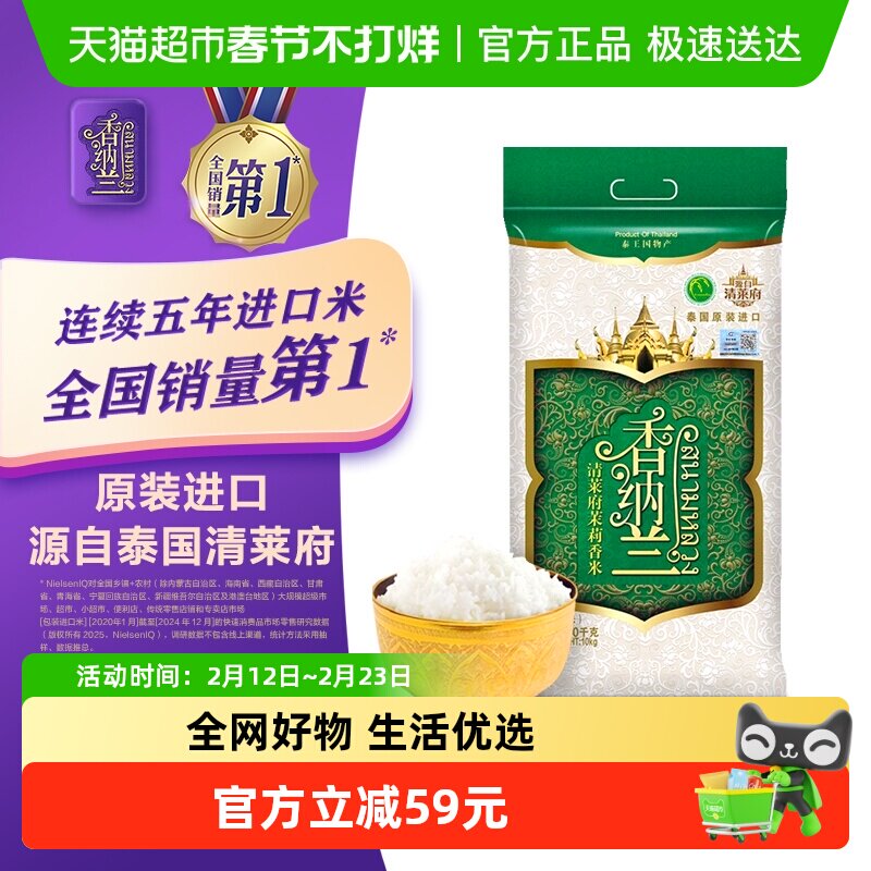 📚 香纳兰清莱府茉莉香米10kg*1原装进口大米 泰国长粒香米泰米