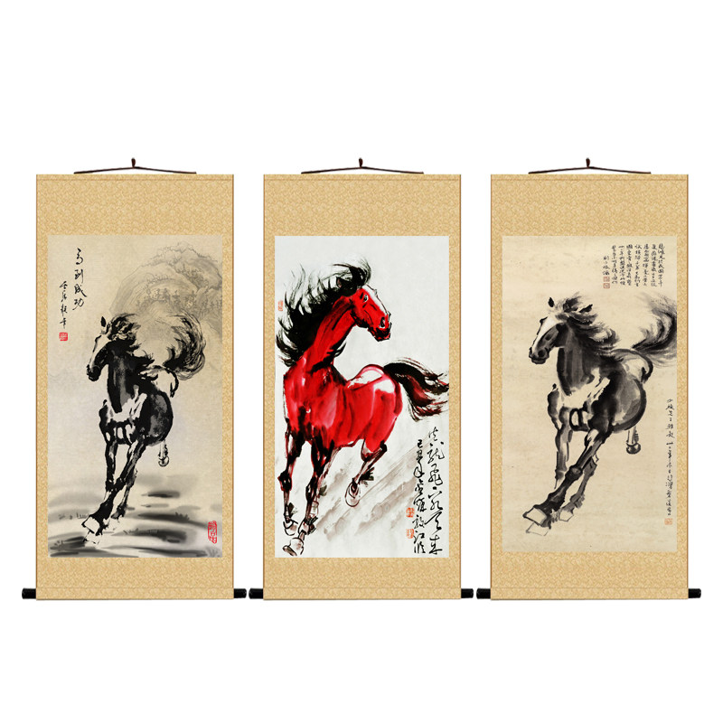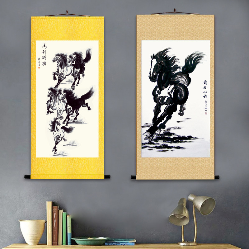 📚 国画马到成功徐悲鸿奔马图八骏图郎世宁马中式客厅办公室装饰挂画