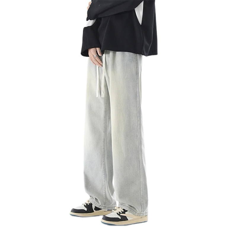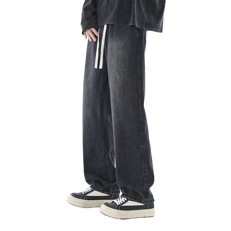 📚 SMILE ISLAND 美式直筒阔腿系绳中腰显高显瘦水洗牛仔长裤