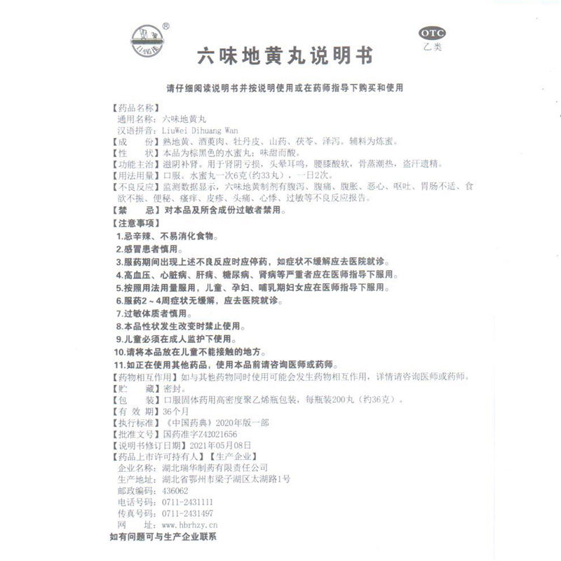 📚 200丸】瑞华六味地黄丸fs滋阴补肾药头晕耳鸣腰膝酸软正品OTC