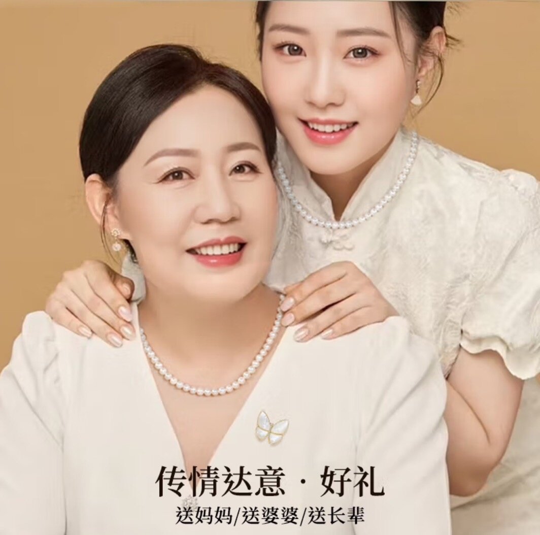 📚 香港品牌天然贝珠珍珠项链妈妈款强光正圆施家珍珠送婆婆长辈礼物