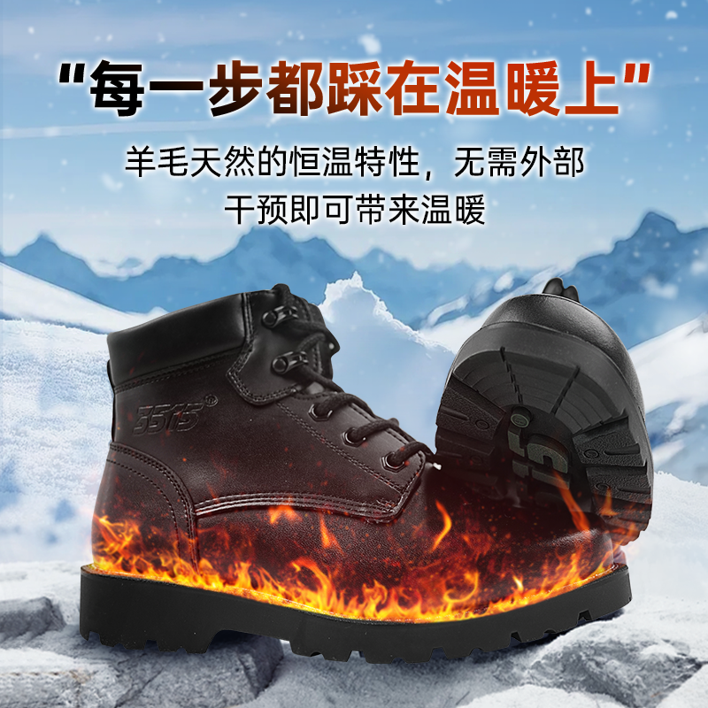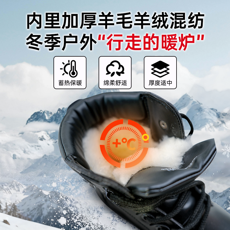 📚 际华3515强人男士冬季防寒马丁靴户外保暖中筒羊毛靴加绒高帮男靴