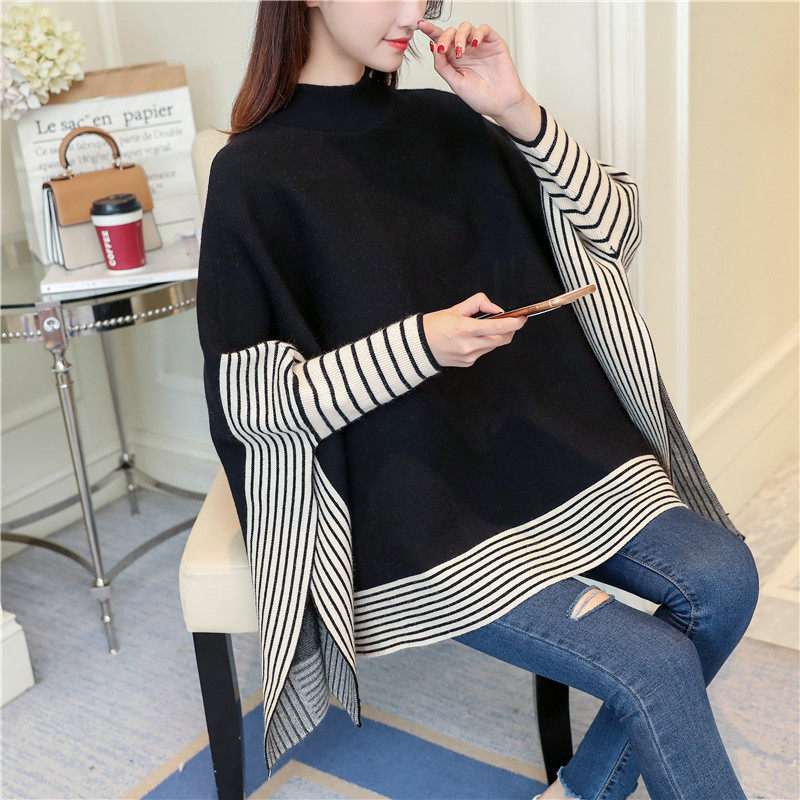 📚 Cape shawl jacket sweater women's medium length loose top 衣