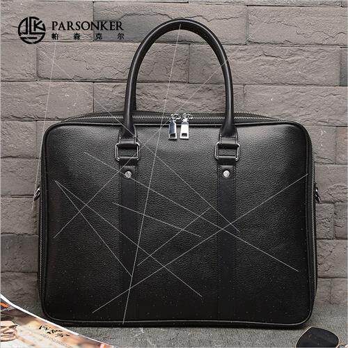 📚 Men leather handbag double zipper cowhide fashion bag busine