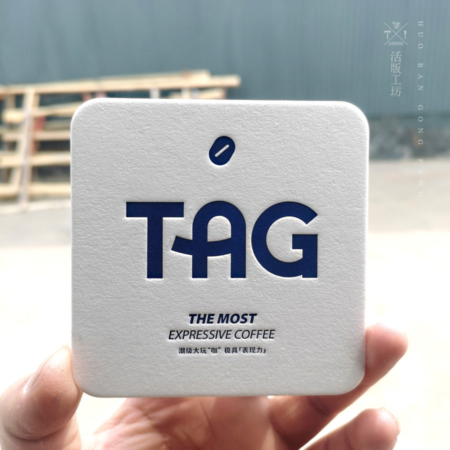 📚 2MM加厚吸水棉纸杯垫印刷定制letterpress凸版凹印酒吧咖啡店杯垫