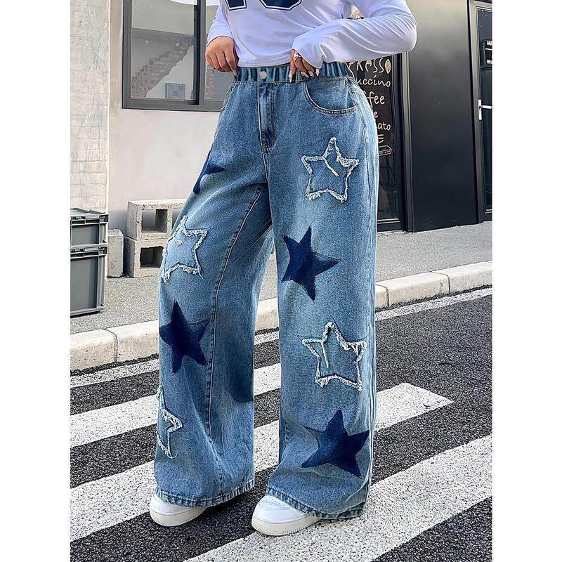 📚 School Ready Girls Y2K StarPatterned WideLeg Jeans Comfy