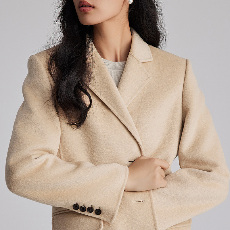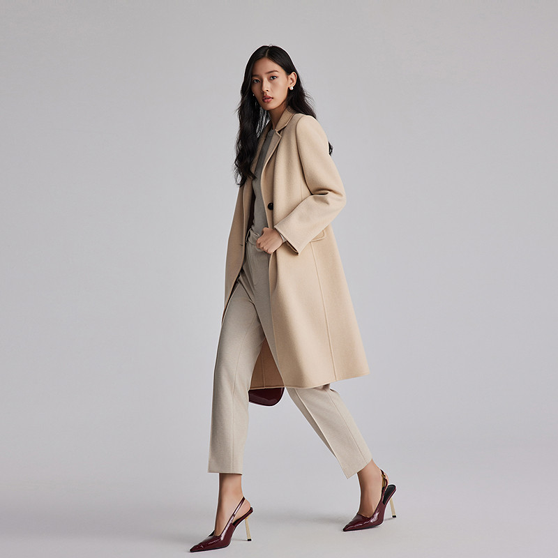 📚 OBEG欧碧倩西装领双面呢羊毛大衣女中长简约气质羊绒外套10484030