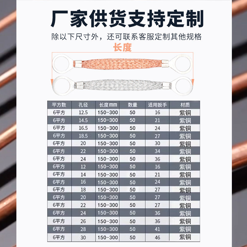 📚 16平方法兰跨接线门窗幕墙防避雷铜导线纯铜静电编织带桥架接地线
