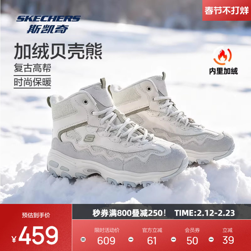 📚 斯凯奇贝壳熊老爹鞋加绒保暖女款高帮超轻熊猫鞋舒适时尚潮流