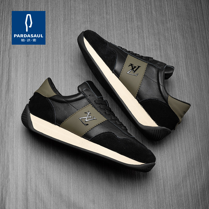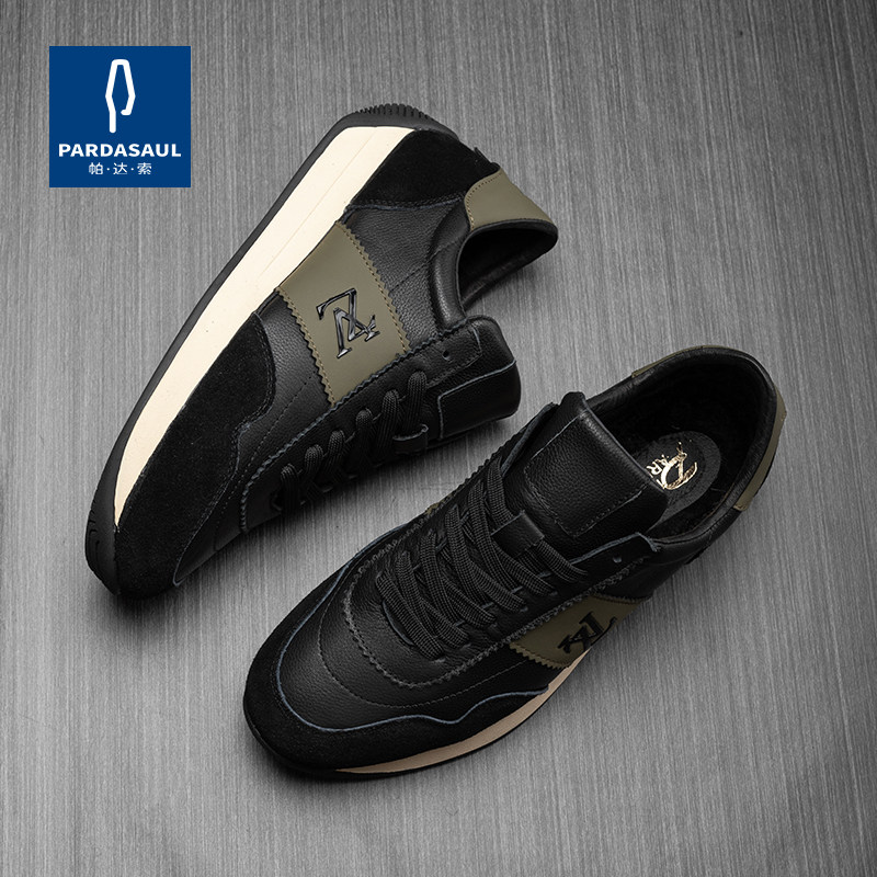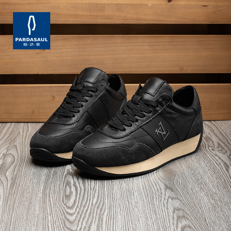 📚 帕达索休闲男鞋真皮拼色阿甘鞋潮流百搭厚底增高男士运动鞋231135