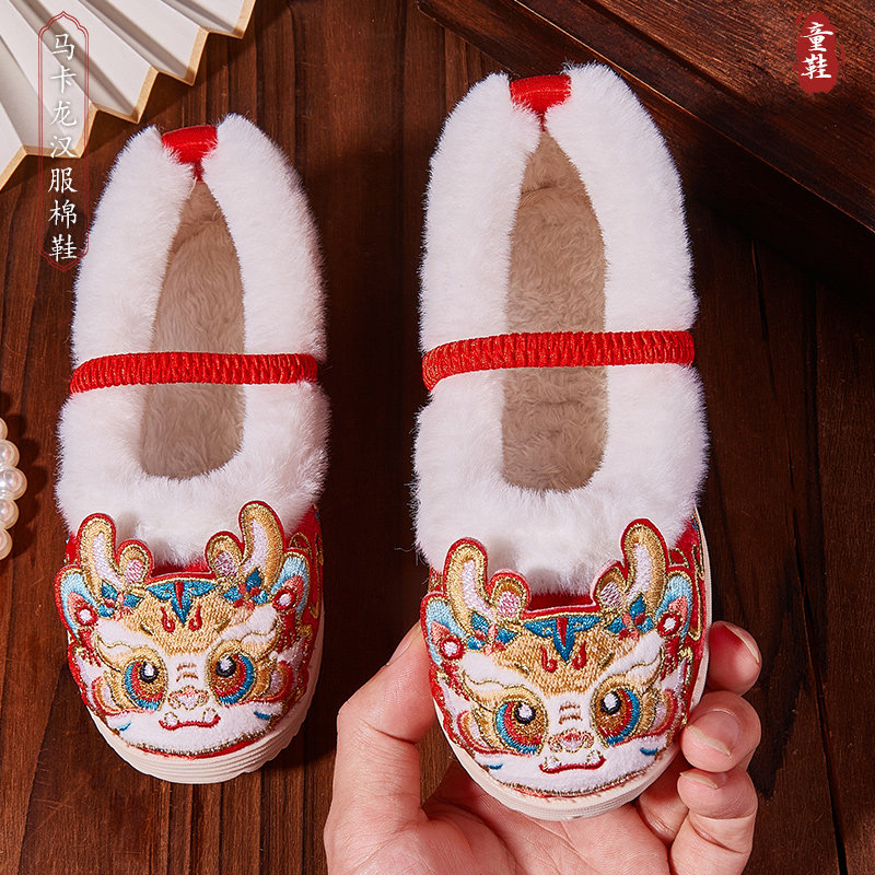 📚 汉服鞋女童冬季2025新款手工宝宝布鞋古风拜年加绒棉鞋儿童绣花鞋