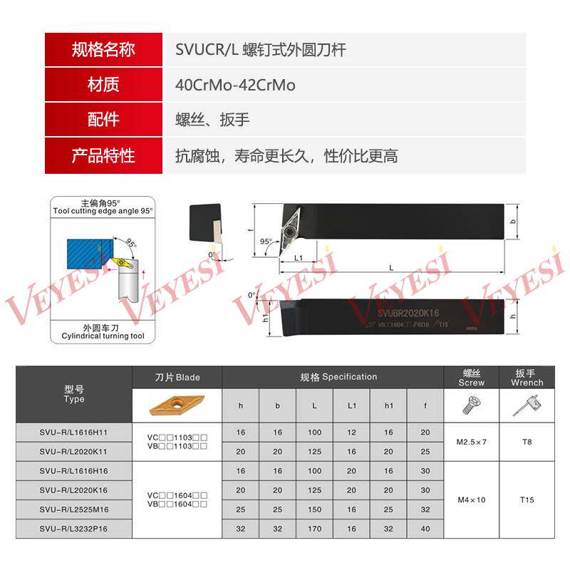 📚 95度S型外圆车刀SVUCR/SVUCL 1212H11/1616H11/2020K11/2525M16