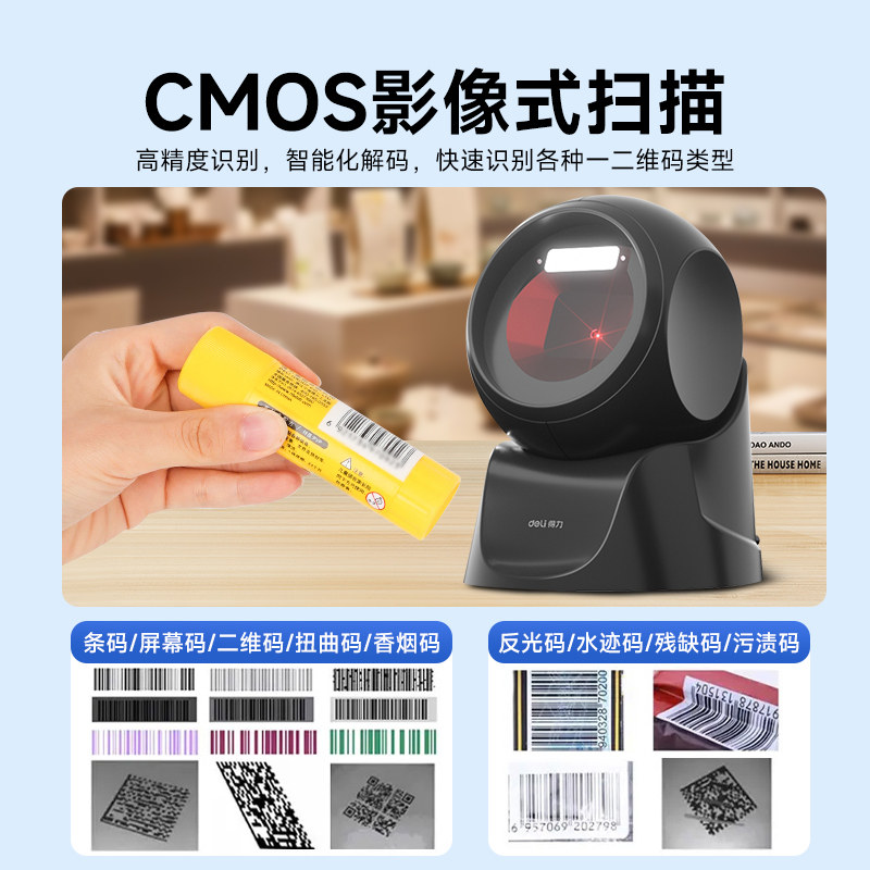📚 【超市扫码收银】得力扫码器条码扫描枪二维码识别扫码球一维码扫码平台收钱器条形码收银机连接电脑扫描仪